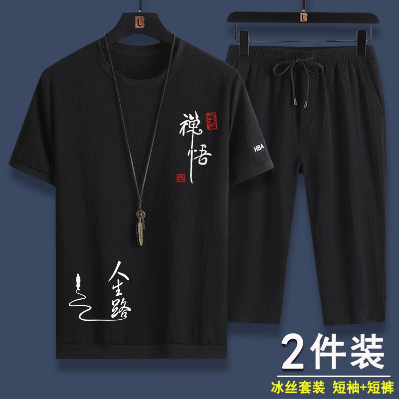 夏季休闲运动套装男士冰丝短袖t恤短裤一整套男生搭配时尚两件套