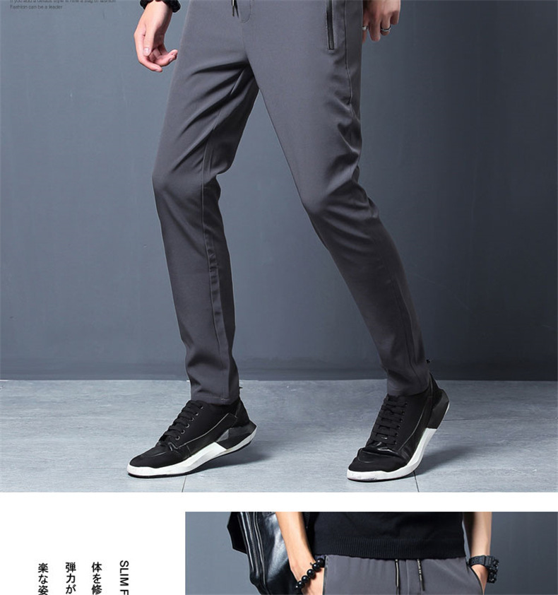 冰夏季薄款丝裤子男宽松拉链直筒修身休闲裤长裤弹力男士运动批发