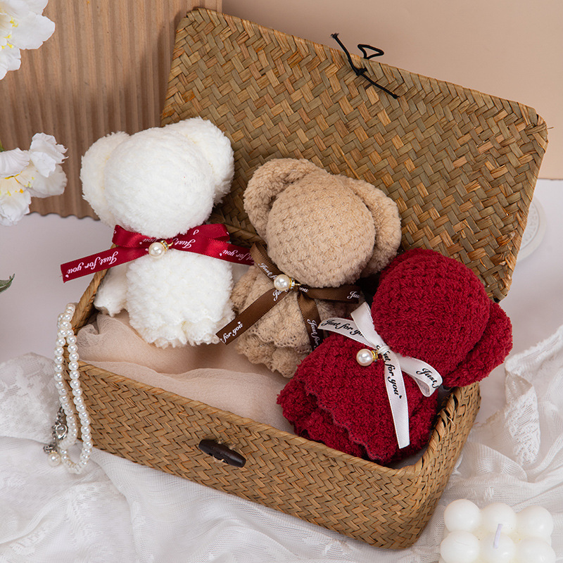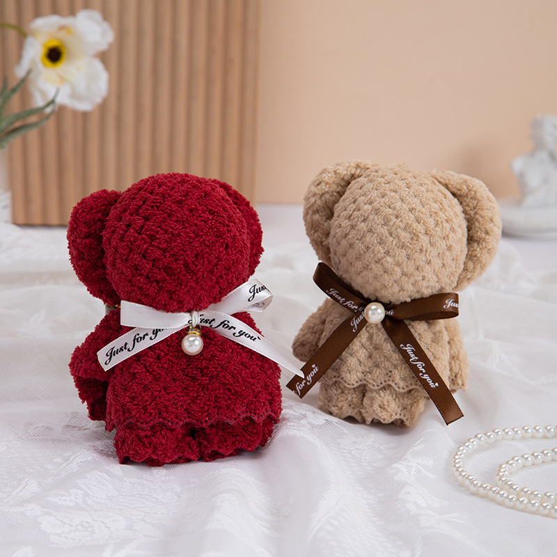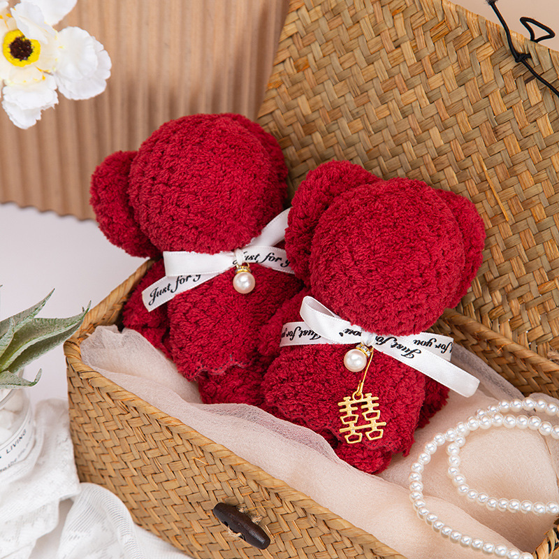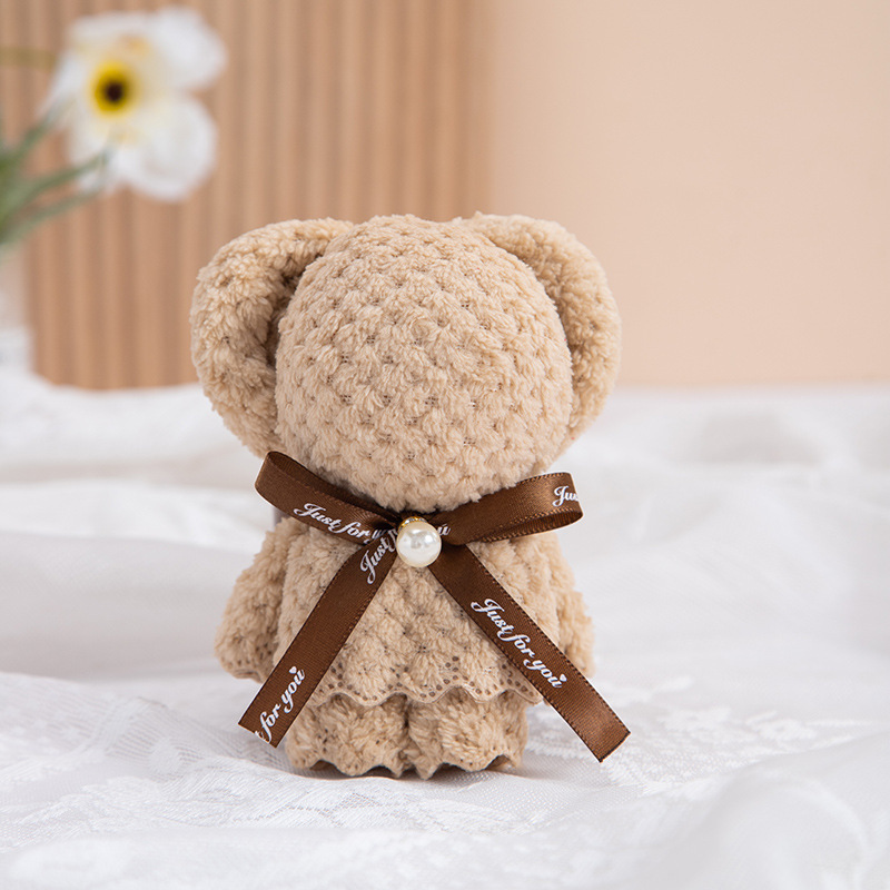小熊造型毛巾珊瑚绒菠萝格柔软吸水节日礼品喜铺婚庆伴手礼