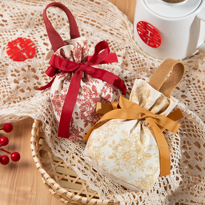 国风布袋礼品袋糖果袋婚礼节日装饰袋伴手礼国风蝴蝶结礼品袋