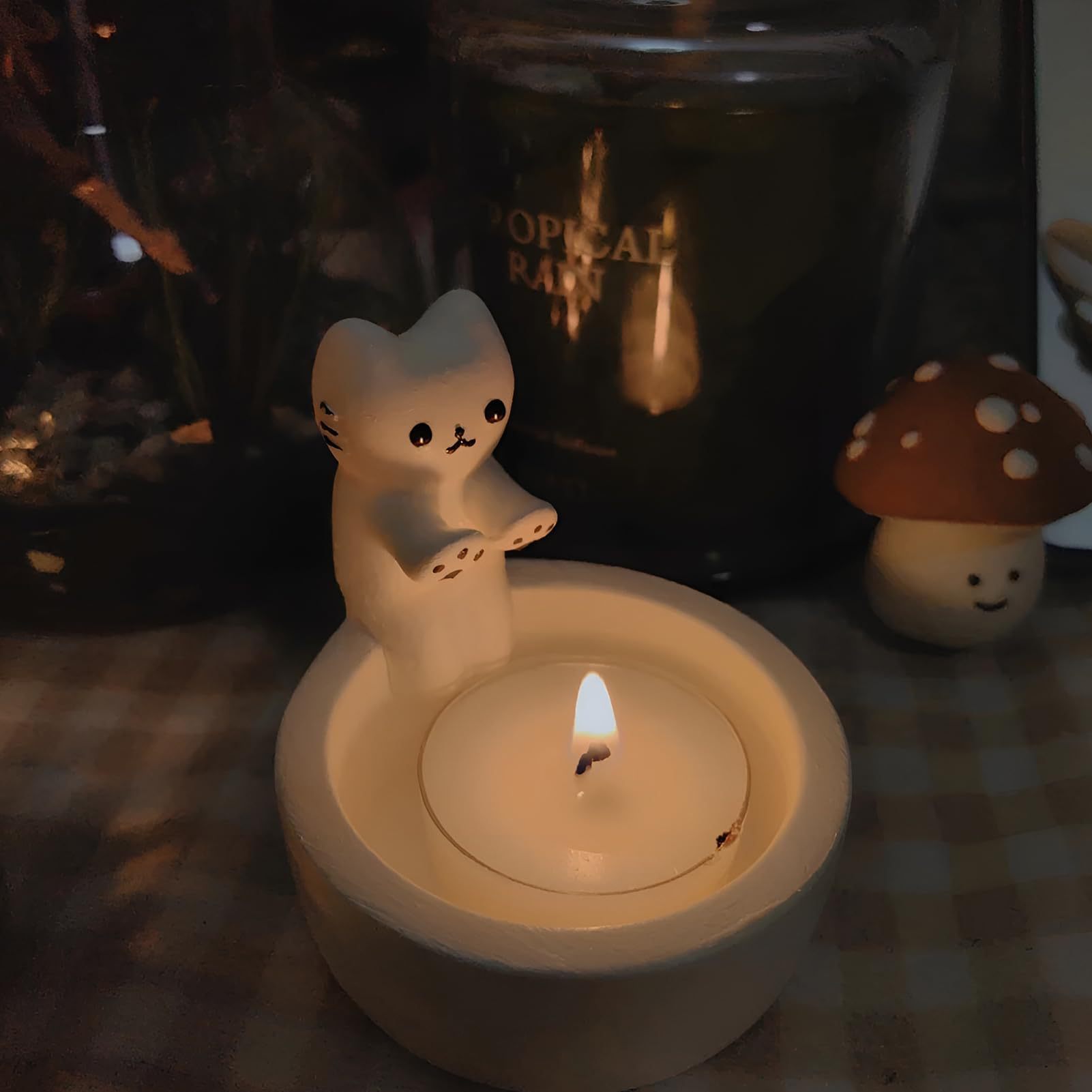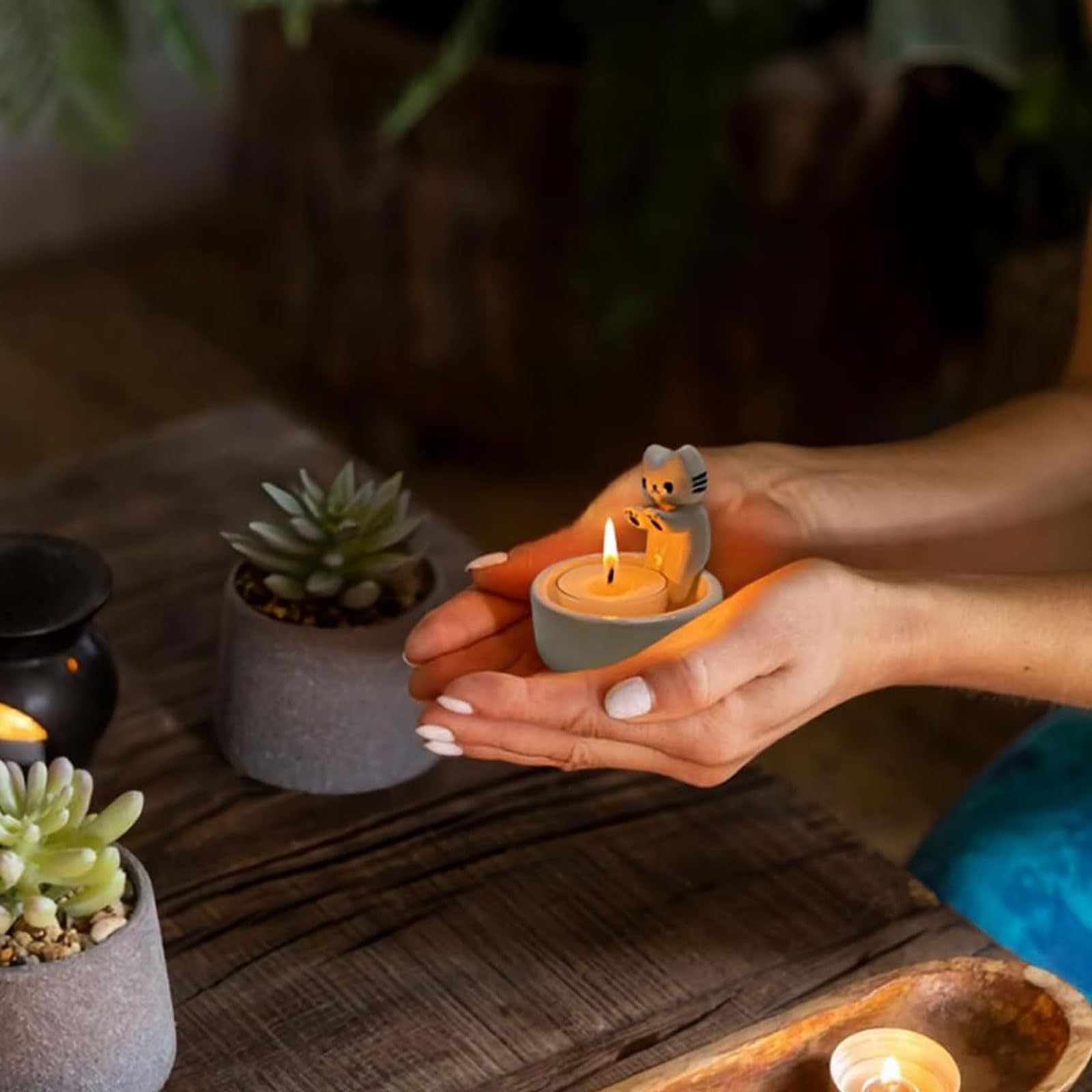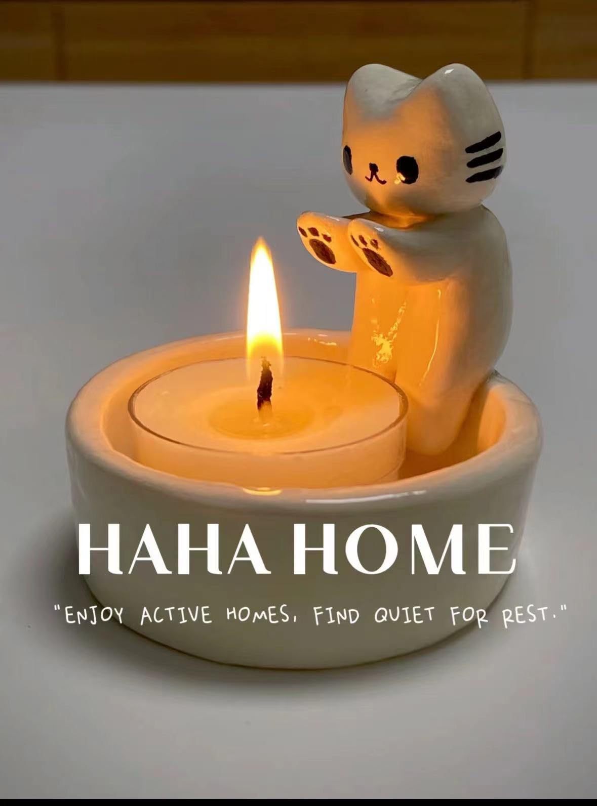 卡通新品跨境风小猫亚马奢工艺客厅烛台艺品树脂工艺品亚马逊取暖