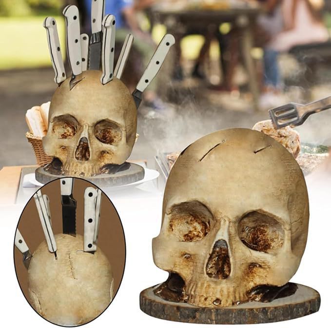 创意摆件节日骷髅头刀叉头树脂桌面摆件厨房置物架跨境万圣节