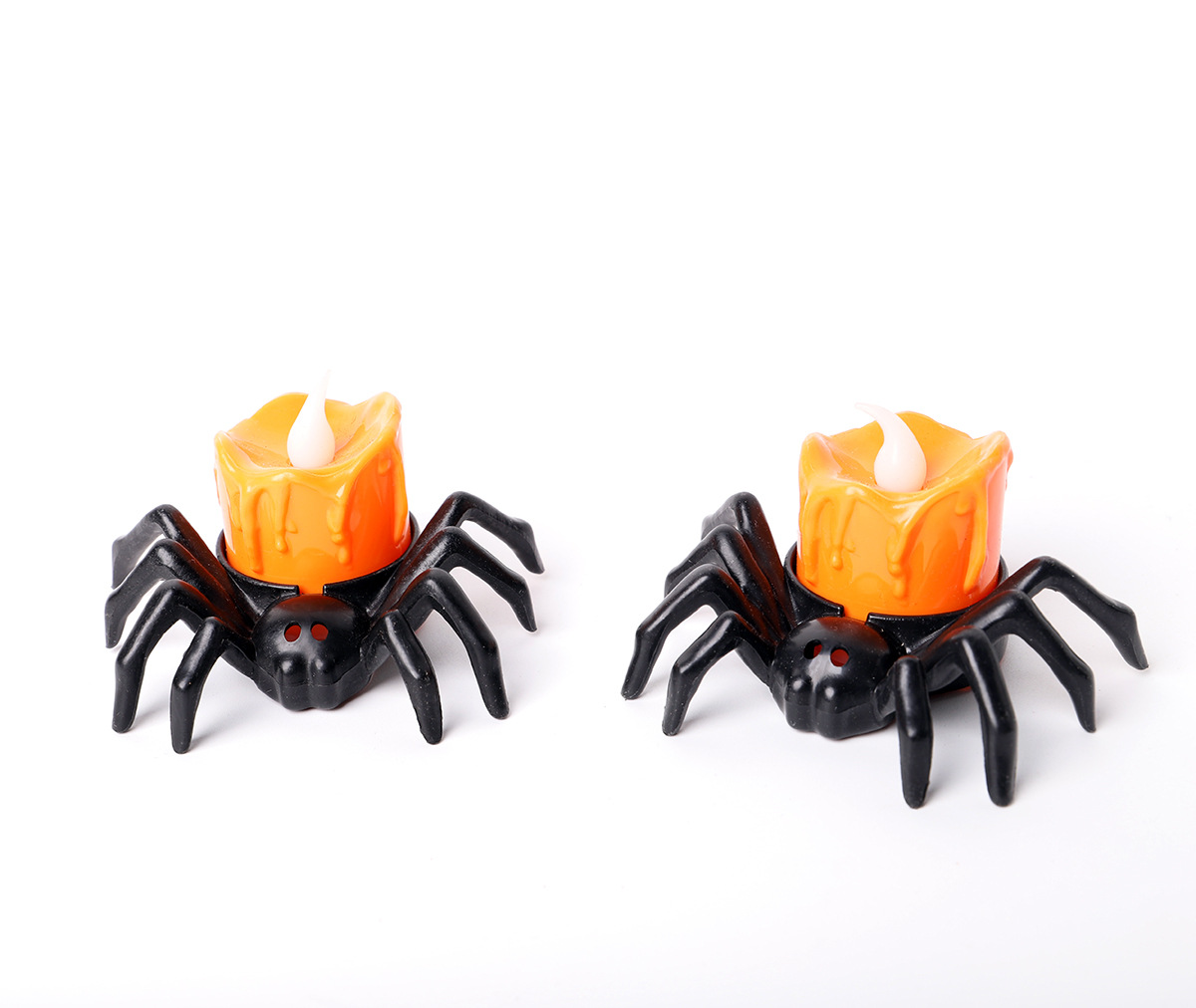 万圣节装饰摆件气氛装饰道具LED电子蜡烛灯发光蜘蛛小夜灯摆件