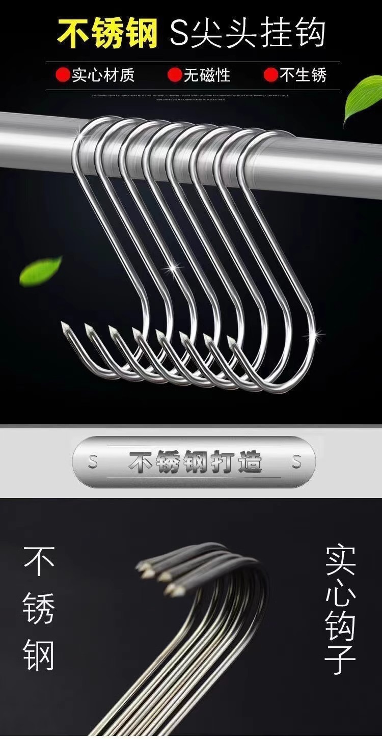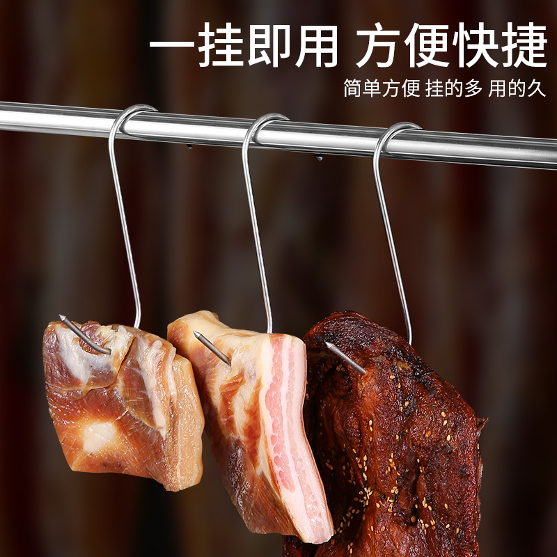 实心不锈钢腊肉挂钩S型加粗挂香肠烤鸭煮牛肉钩子尖头烧腊钩批发