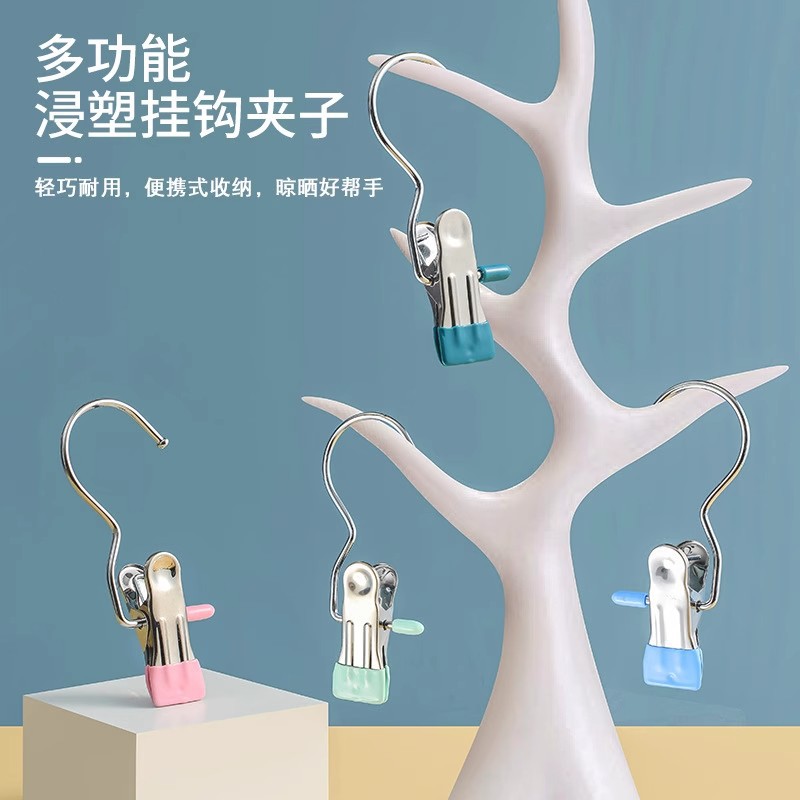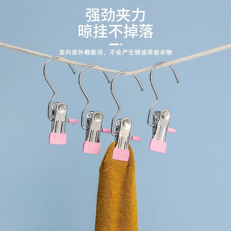 多功能带挂钩三字夹帽子无痕夹晾晒袜夹便携防滑不锈钢挂钩小夹子