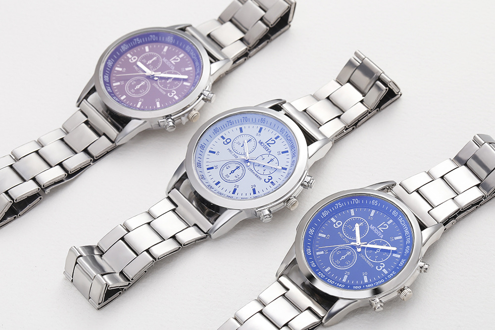 蓝光玻璃三眼钢带手表 男士 热款礼品男士手表 男 男表批发