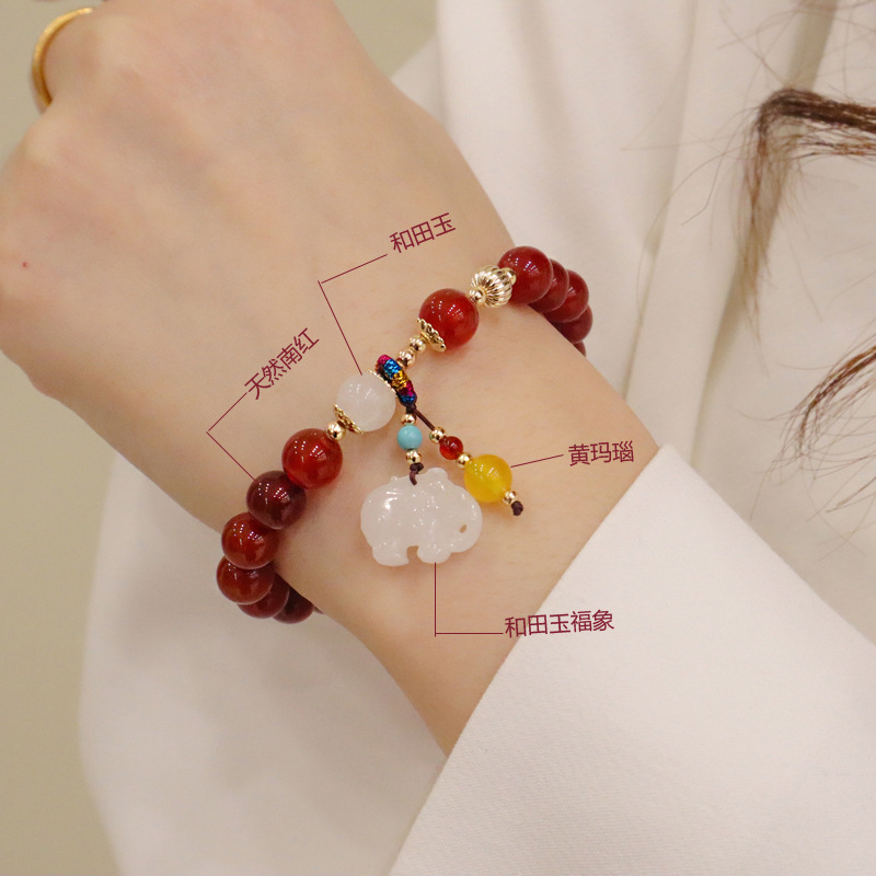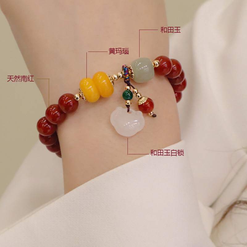 南红和田玉手链手串女水晶小众设计感网红手工串珠手镯