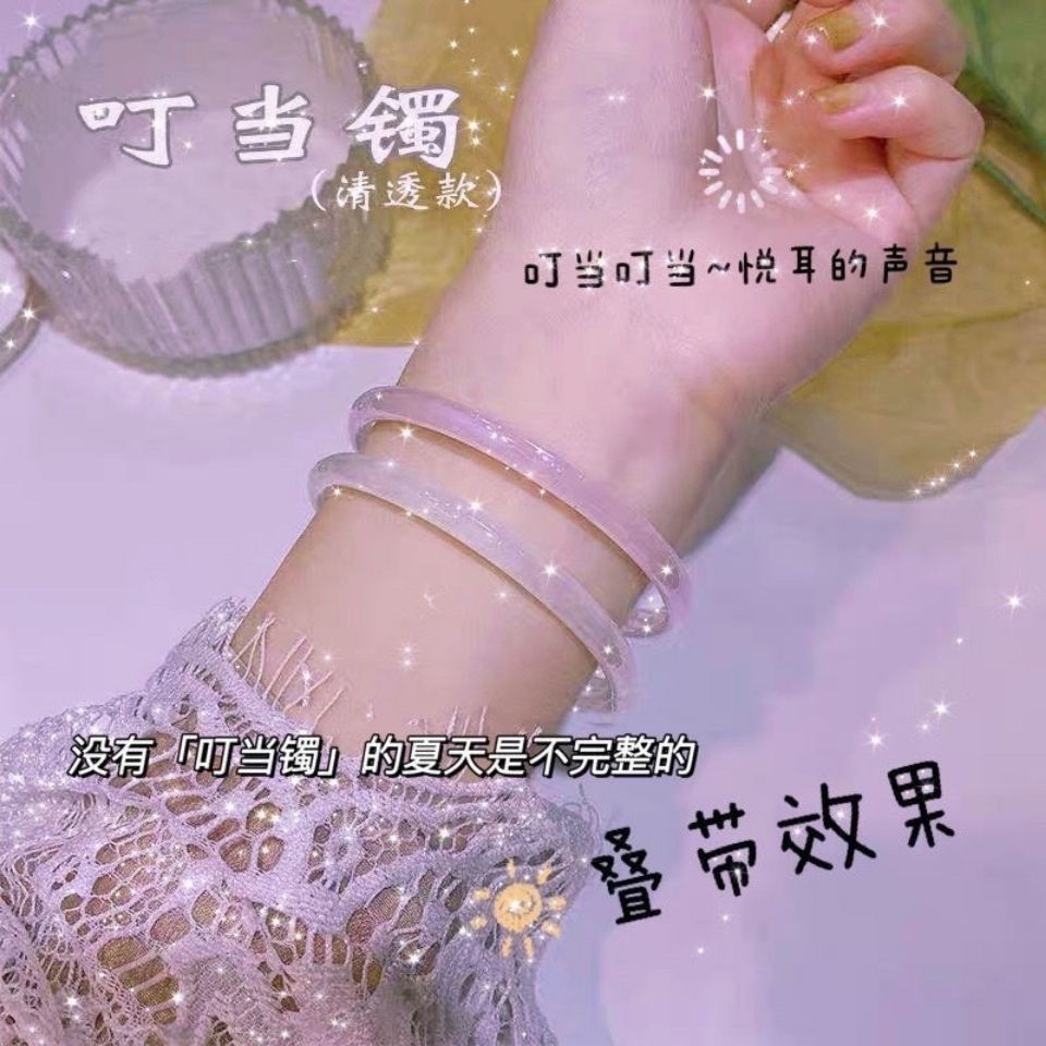 少女叮当镯ins玻璃仿玉细条禁步手环一步一响手镯汉服配饰细镯…
