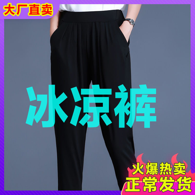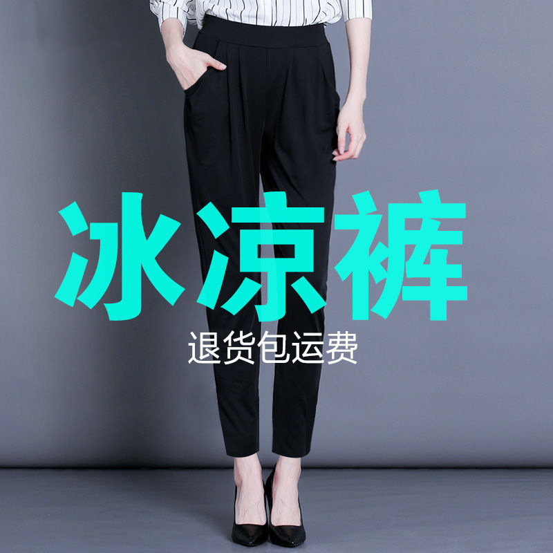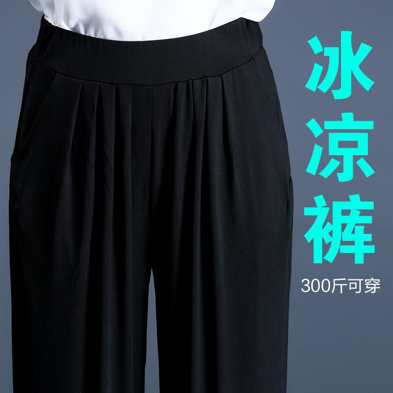 加肥加大码七分裤女夏季胖mm裤子薄款300斤冰丝宽松胖妹妹哈伦裤