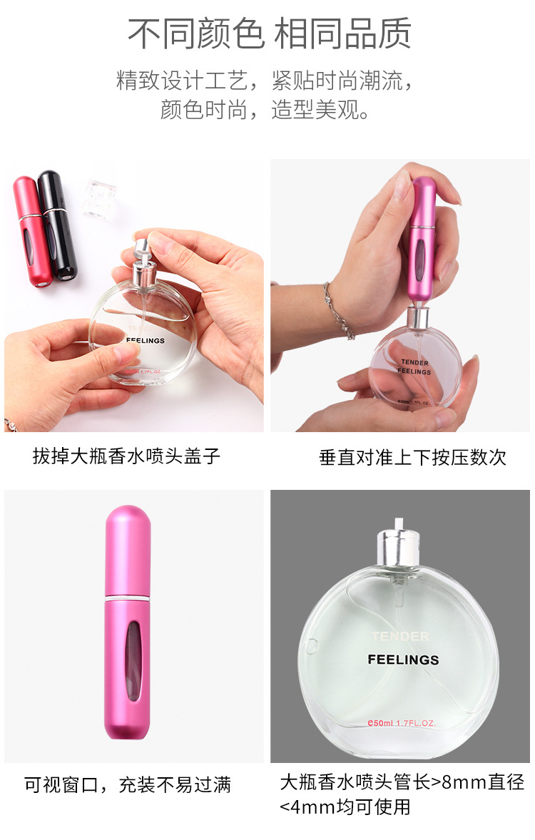 5ML香水分装瓶空瓶子便携底部充自泵式香水瓶喷雾瓶可携带飞机