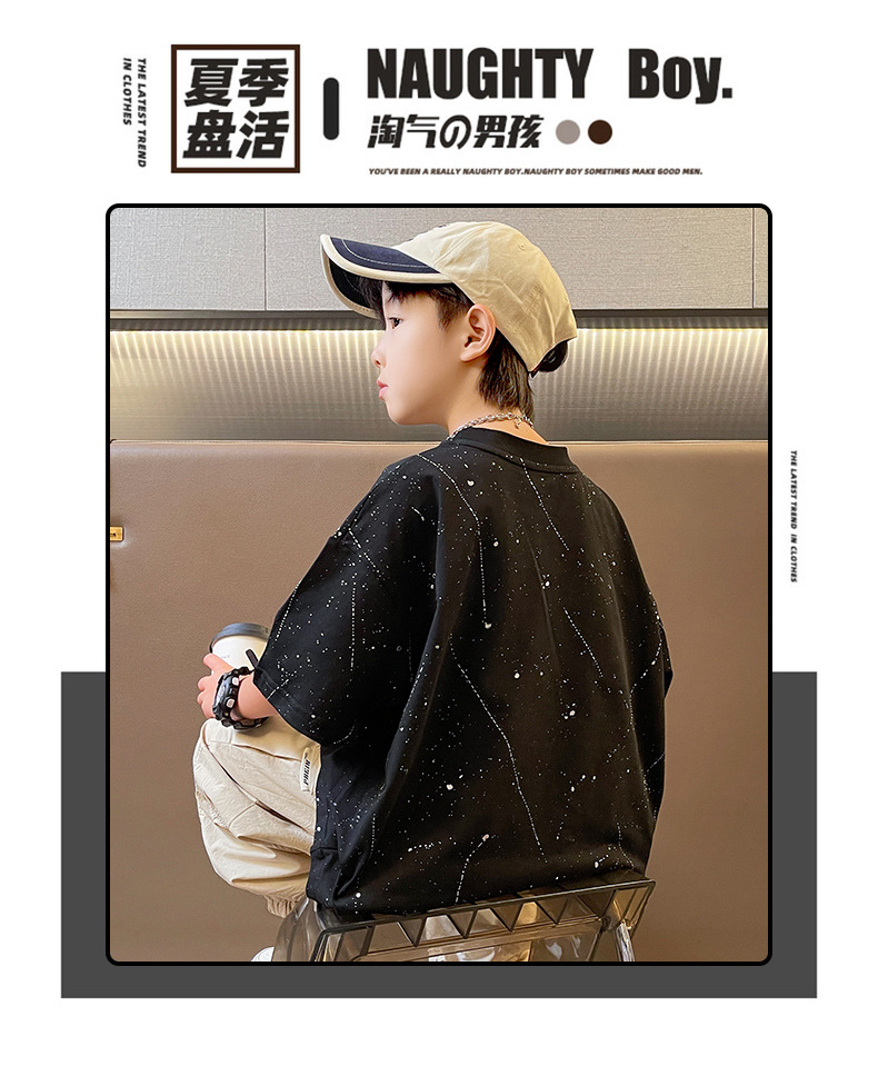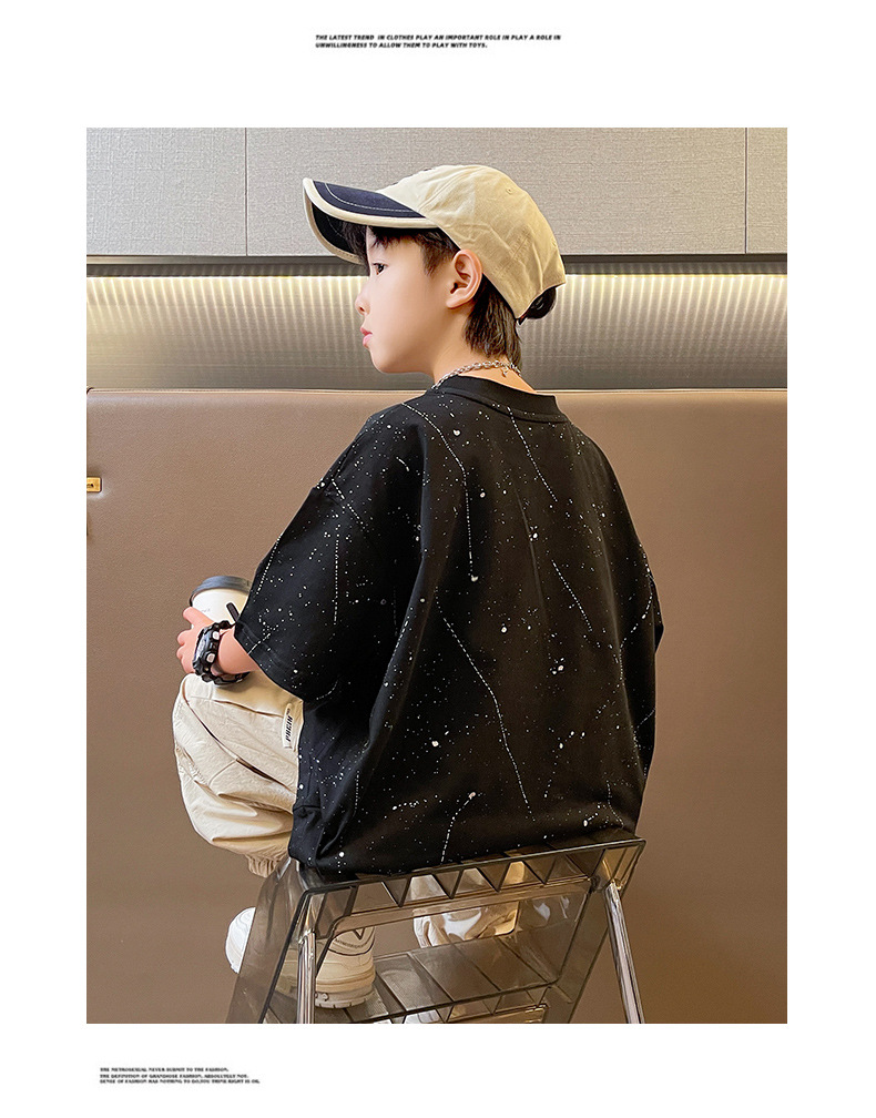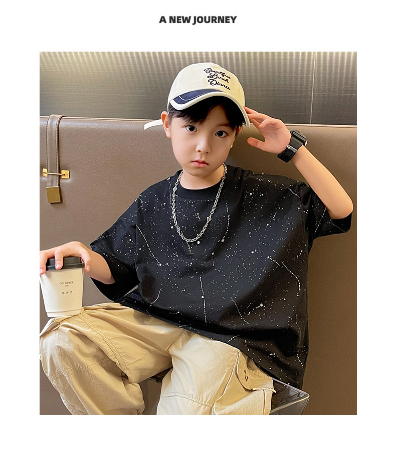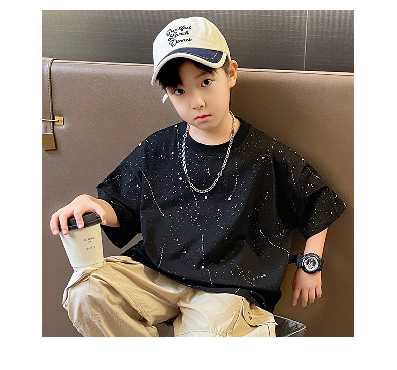 男童夏装星空短袖套装2024新款儿童男孩夏季痞帅休闲T恤防蚊长裤8