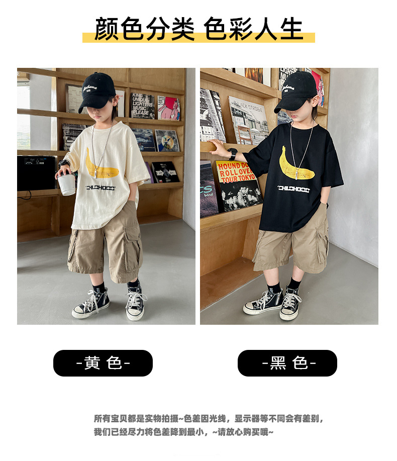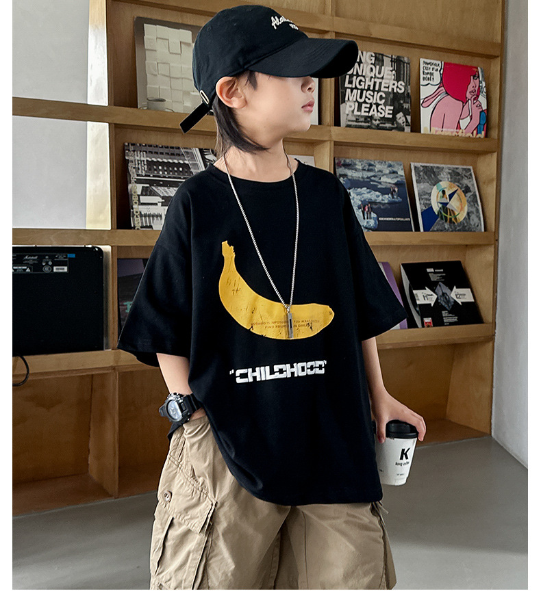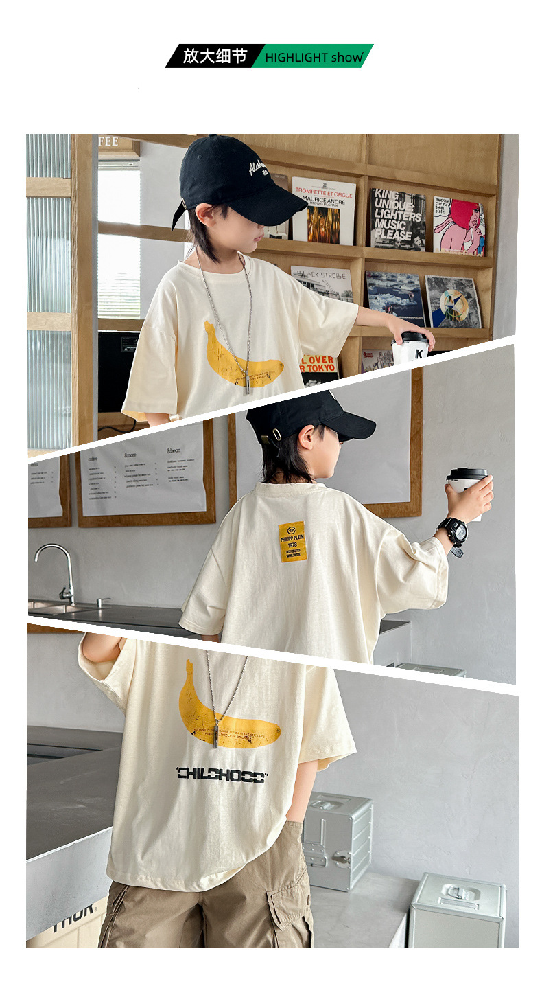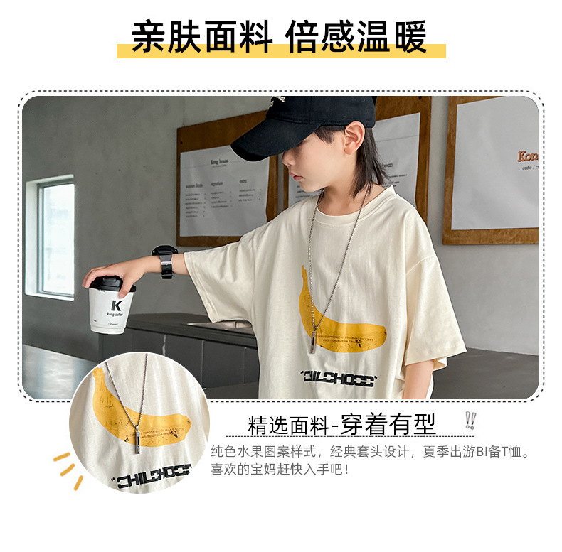 儿童香蕉印花纯色T恤夏款2024新款薄款夏装中大童男孩帅气短袖潮T
