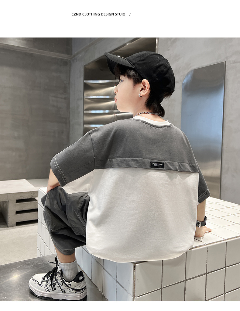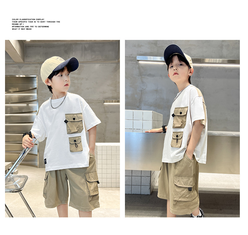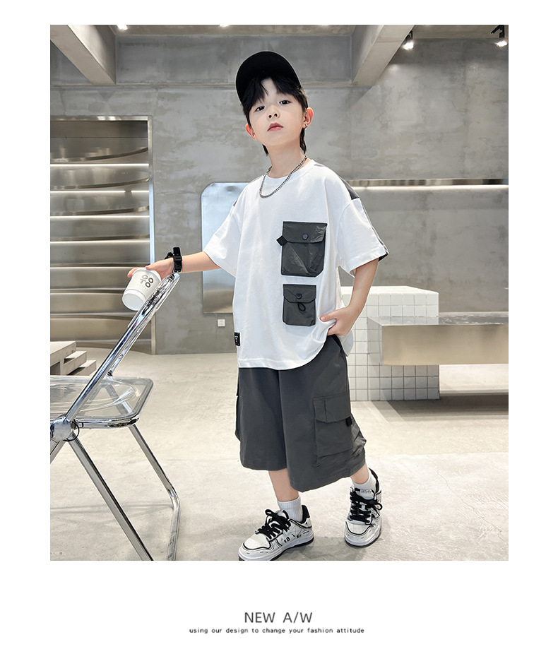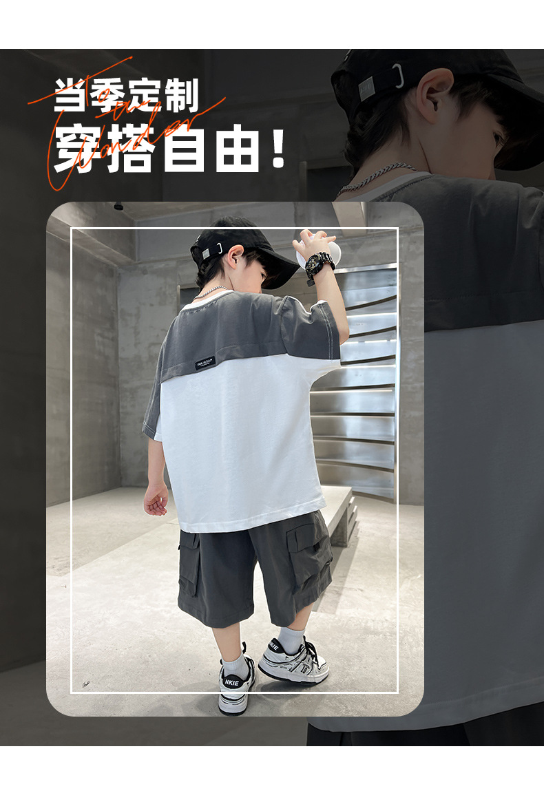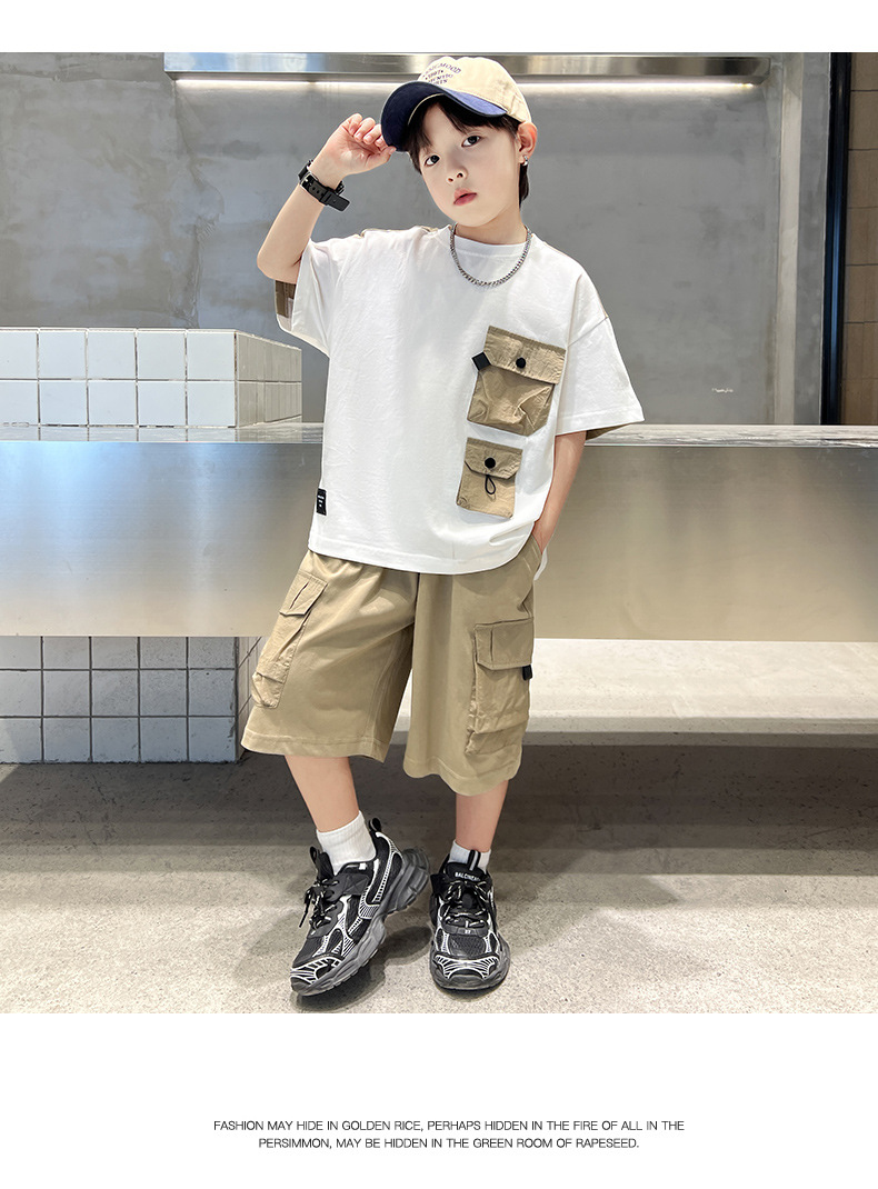 男童夏季工装套装2024新款中大童男孩夏款潮流酷帅短袖工装裤批发