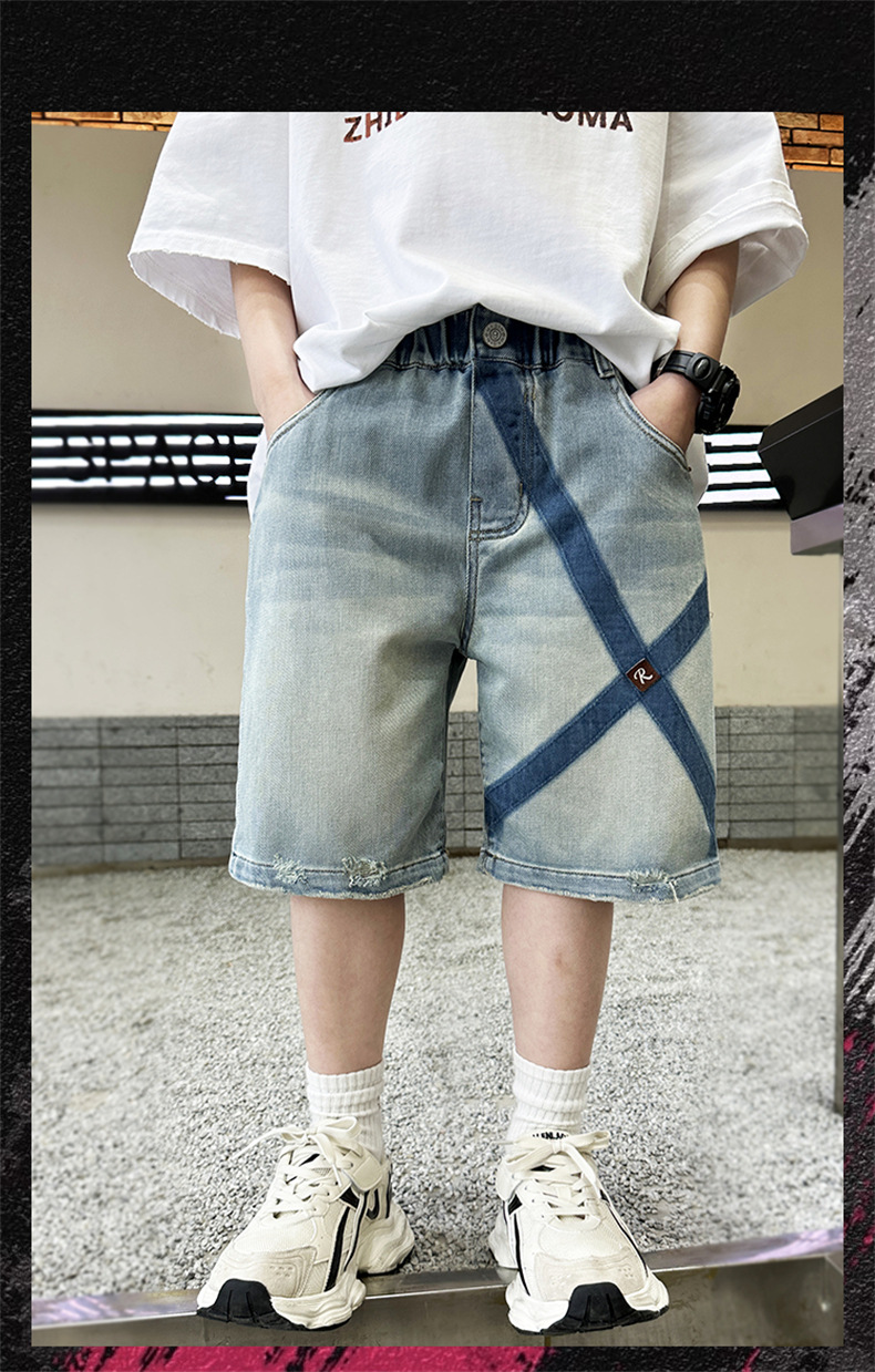 男童牛仔短裤2024新款中大童夏季个性潮酷男孩裤子夏款洋气五分裤