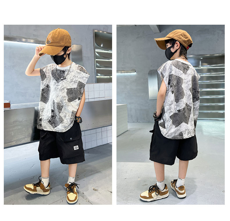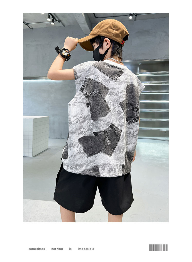 儿童背心T恤夏季薄款2024新款中大童男孩休闲宽松夏天坎肩上衣潮t