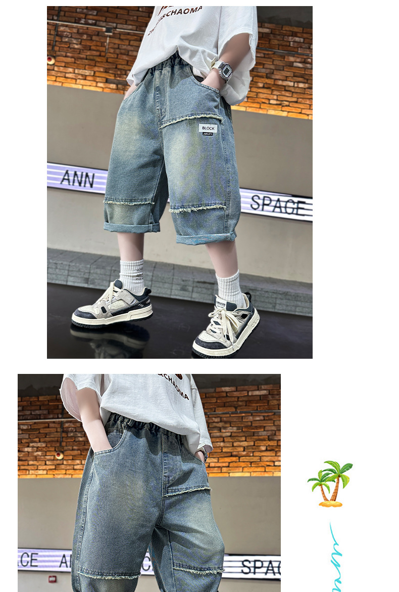 男童裤子夏季儿童牛仔短裤2024新款中大童夏装六分中裤夏款裤子潮