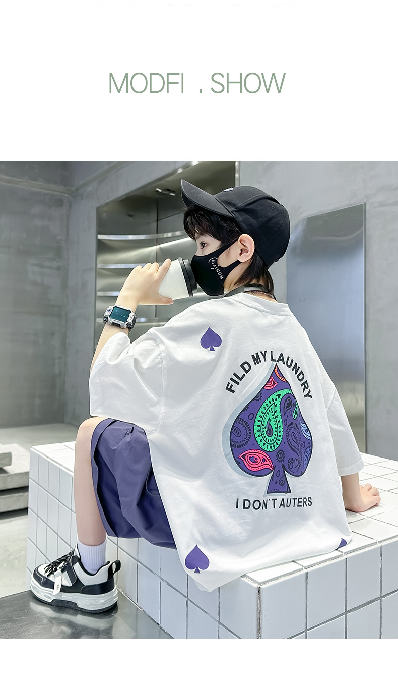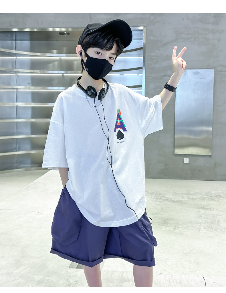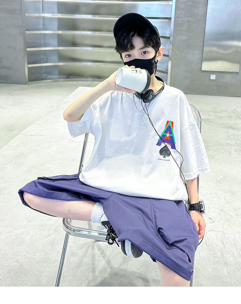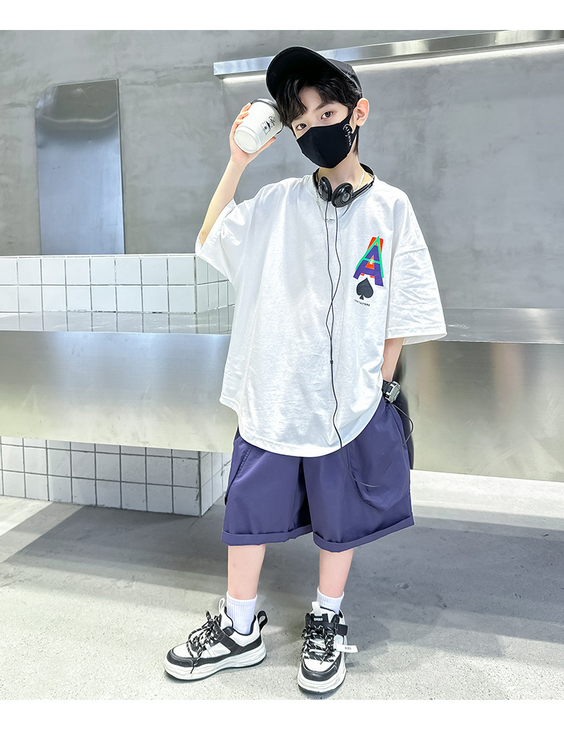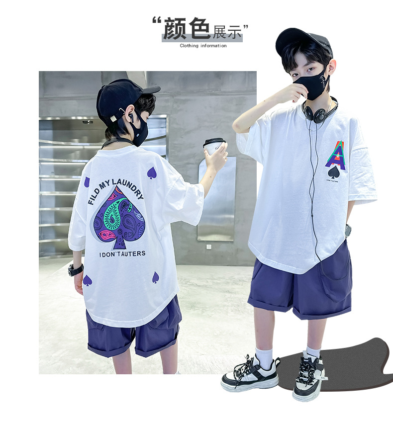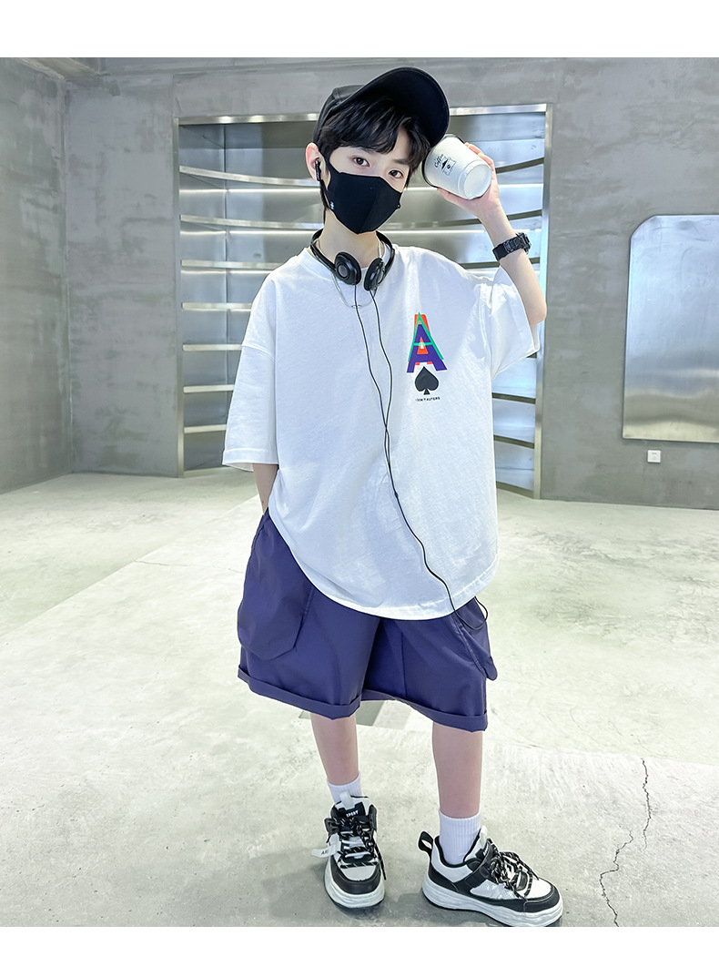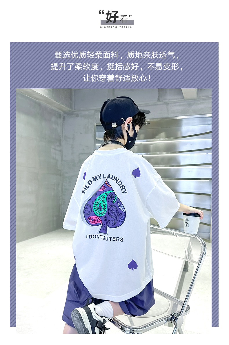 男童夏季套装2024新款痞帅炸街紫色T恤短裤两件套中大童夏款衣服8
