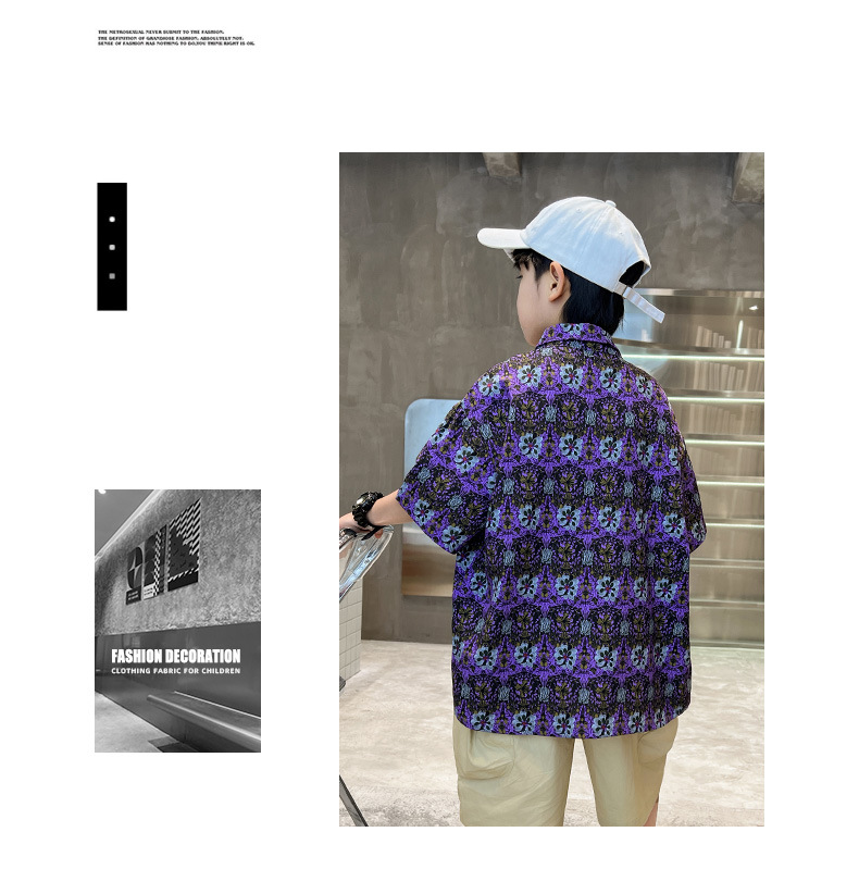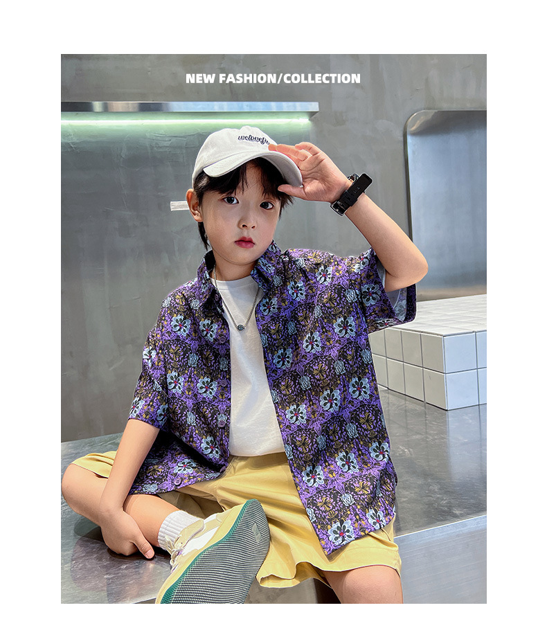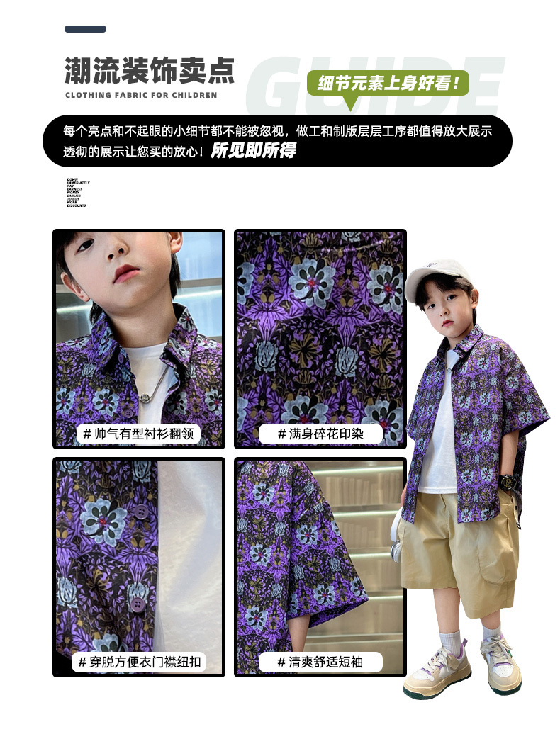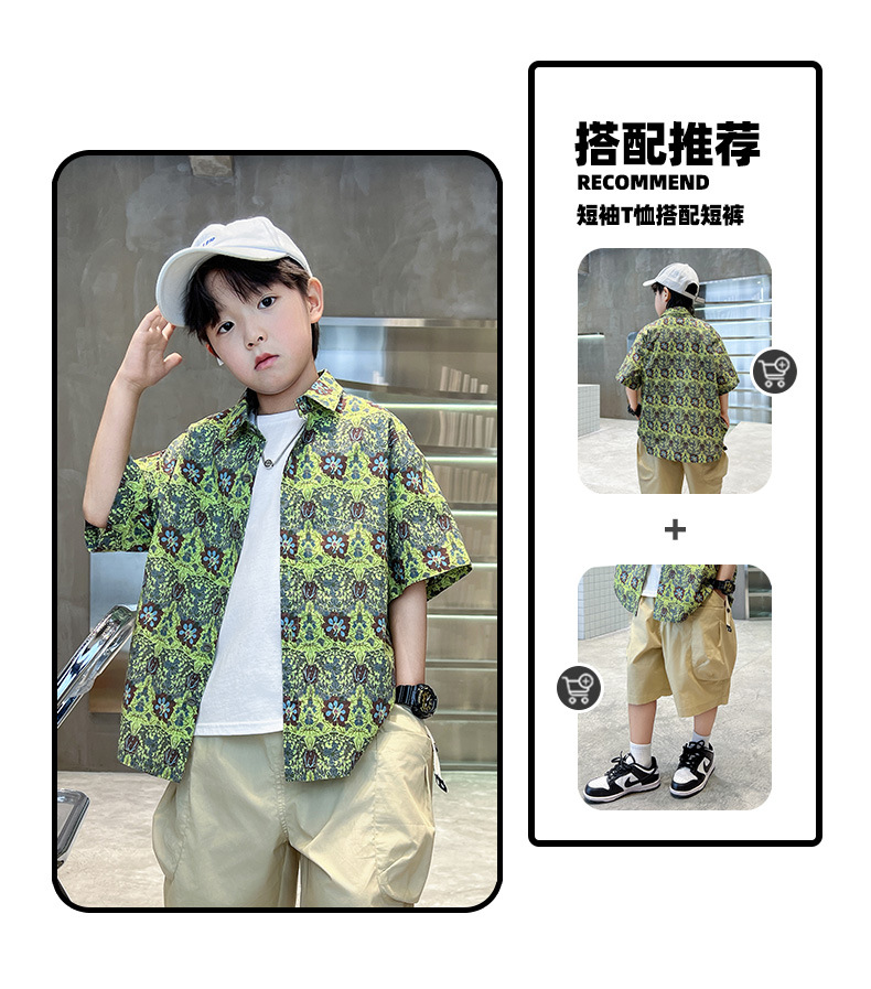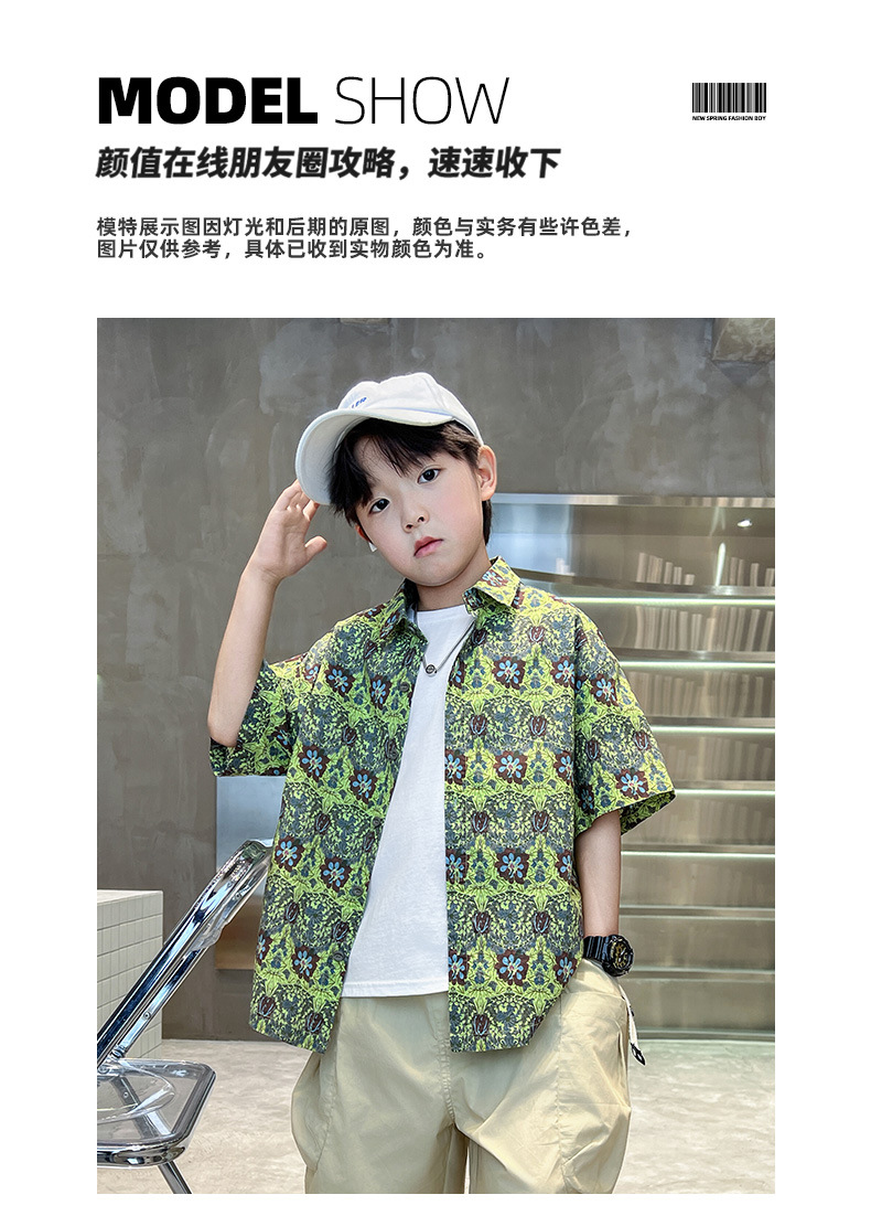 男童衬衫短袖2024新款夏装洋气港风T恤中大童夏季休闲度假风上衣t