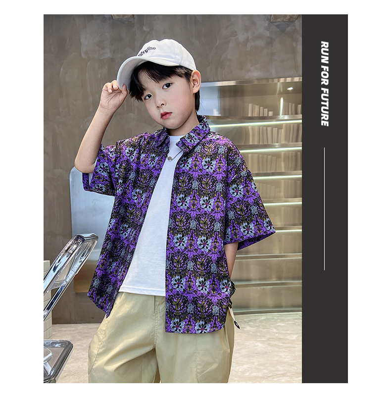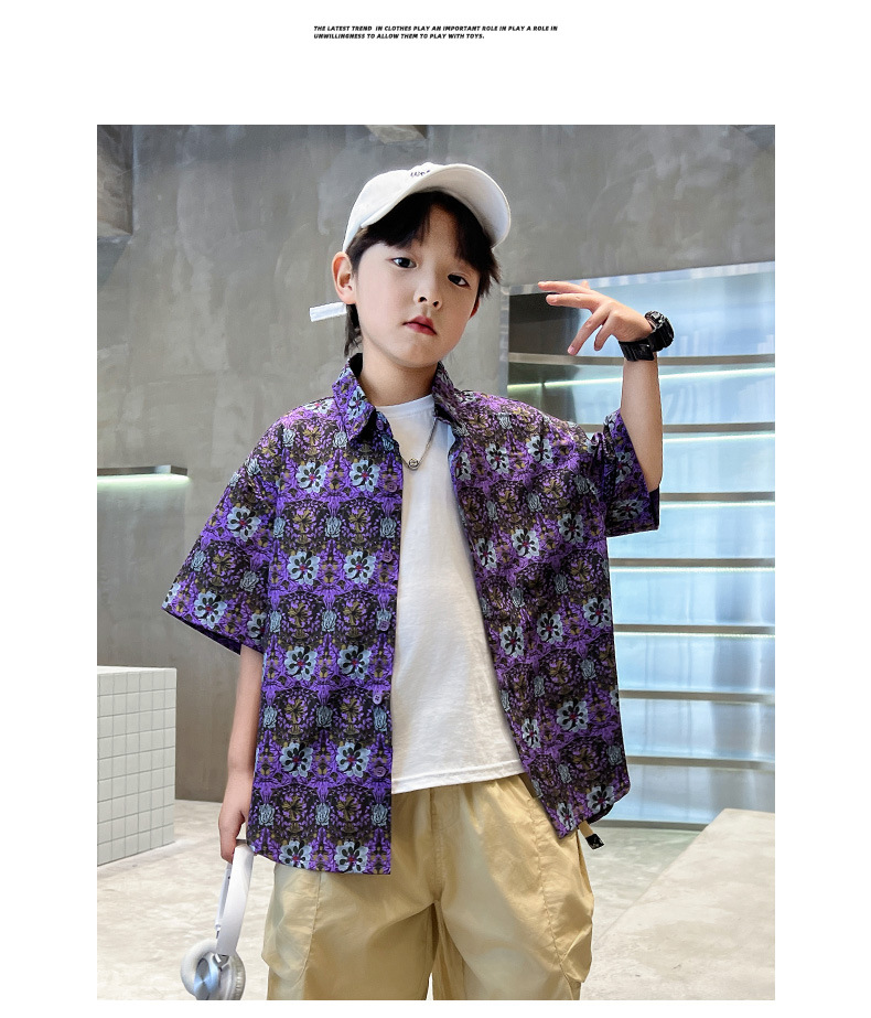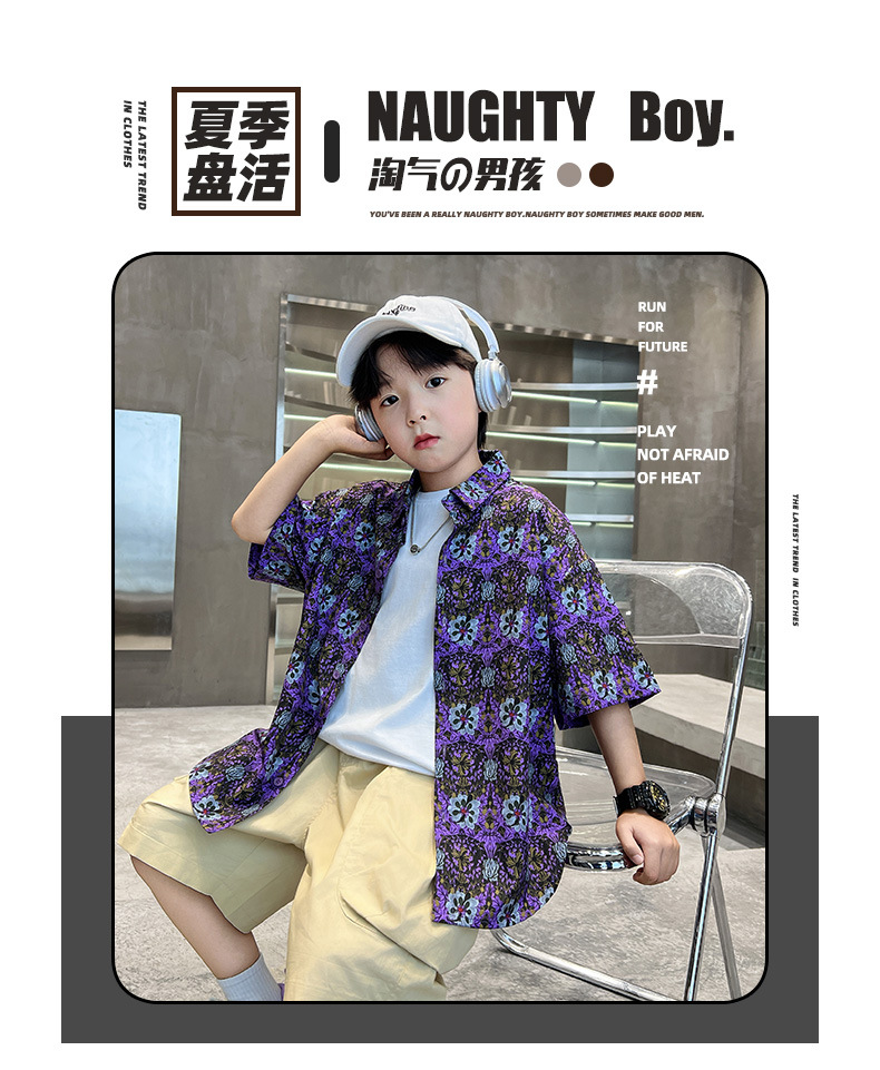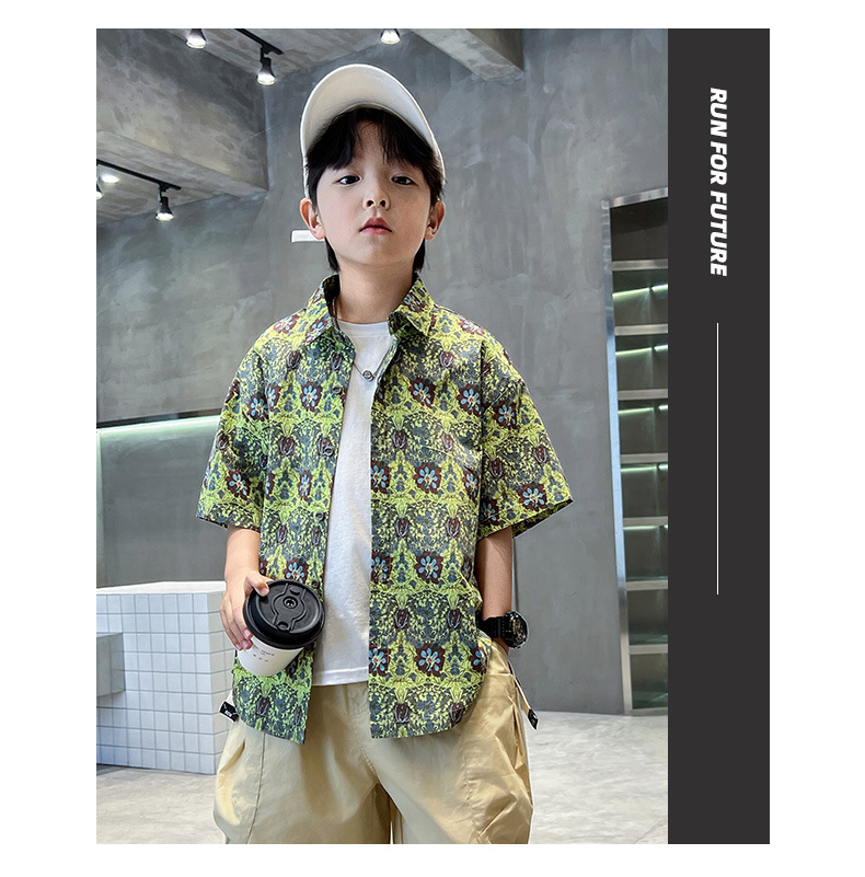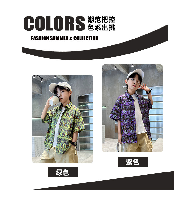 男童衬衫短袖2024新款夏装洋气港风T恤中大童夏季休闲度假风上衣t