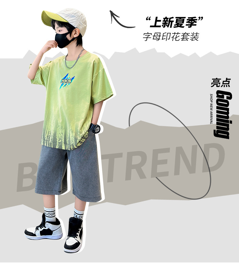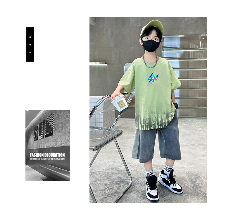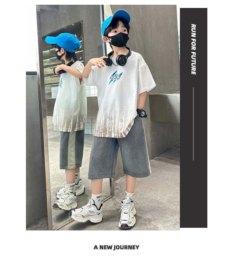 男童冰感短袖套装夏季新款2024中大童男孩T恤短裤两件套儿童衣服8