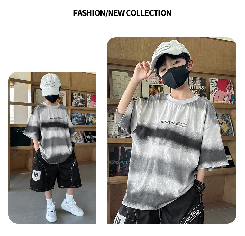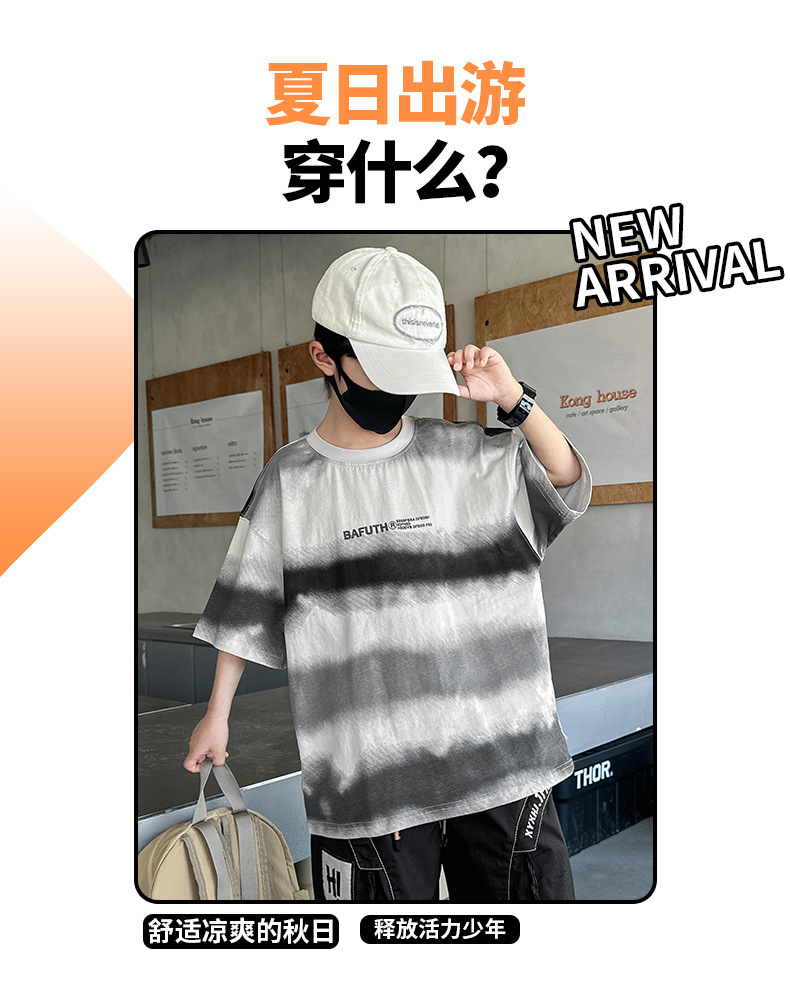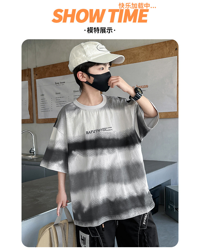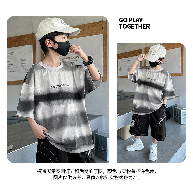 男童短袖T恤大童夏装2024新款儿童夏季扎染酷帅半袖t男孩夏款上衣