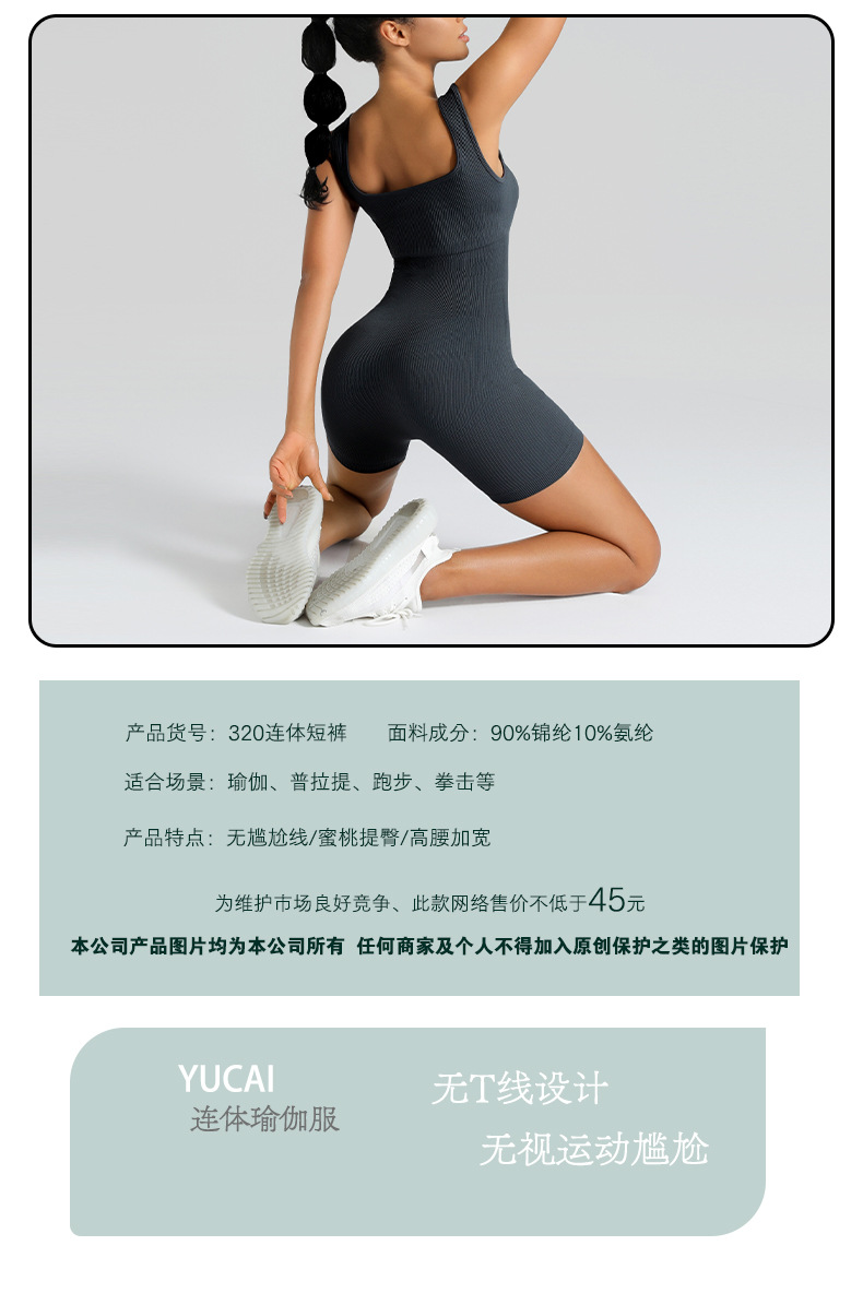 欧美跨境女式瑜伽连身衣紧身夏季健身罗纹短裤短袖运动连身衣
