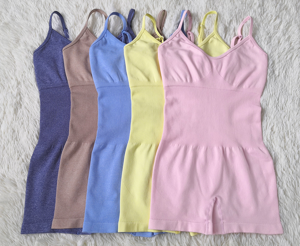 欧美跨境吊带瑜伽短裤紧身健身运动瑜伽服无痕高弹力性感收腹衣女