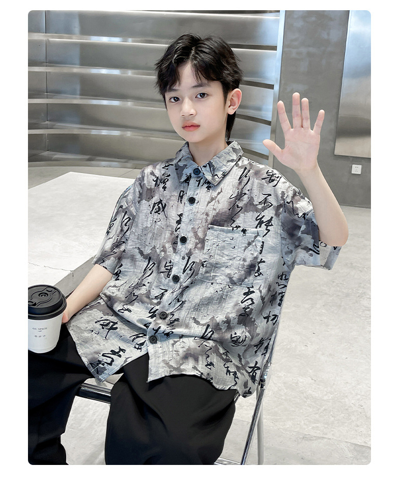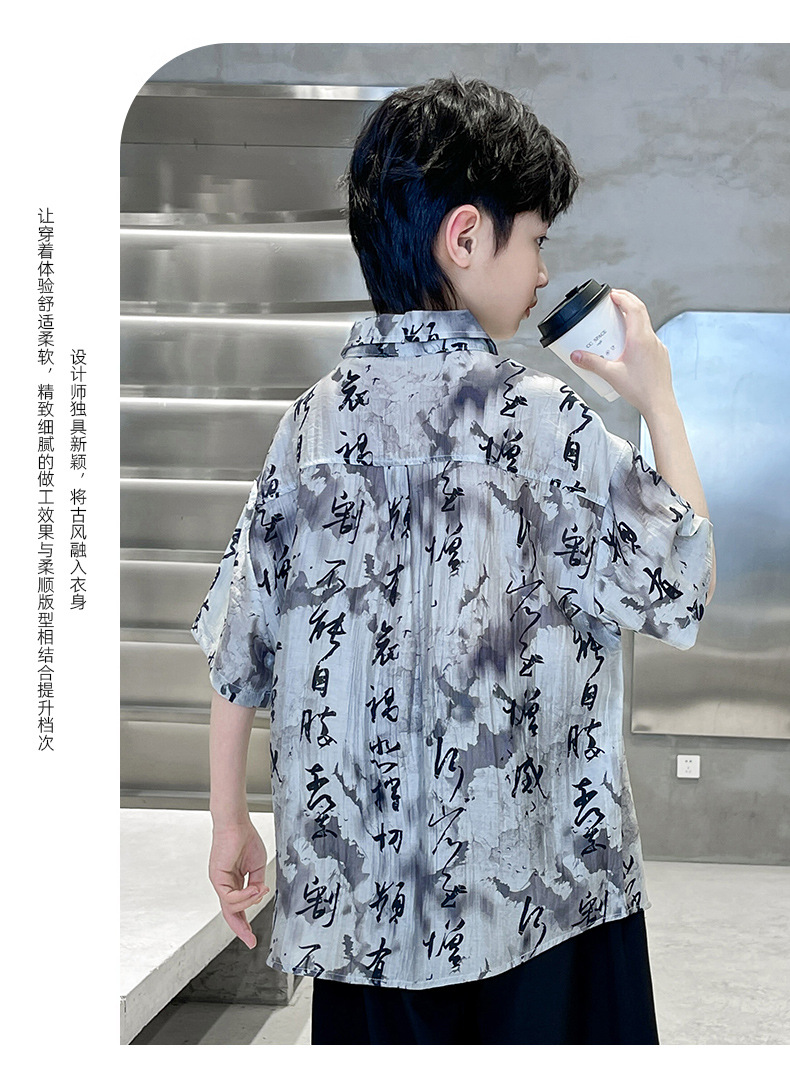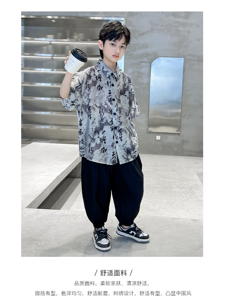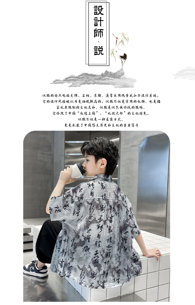 男童汉服衬衫2024新款夏季薄款古风儿童T恤短袖中国风夏装衣服潮t