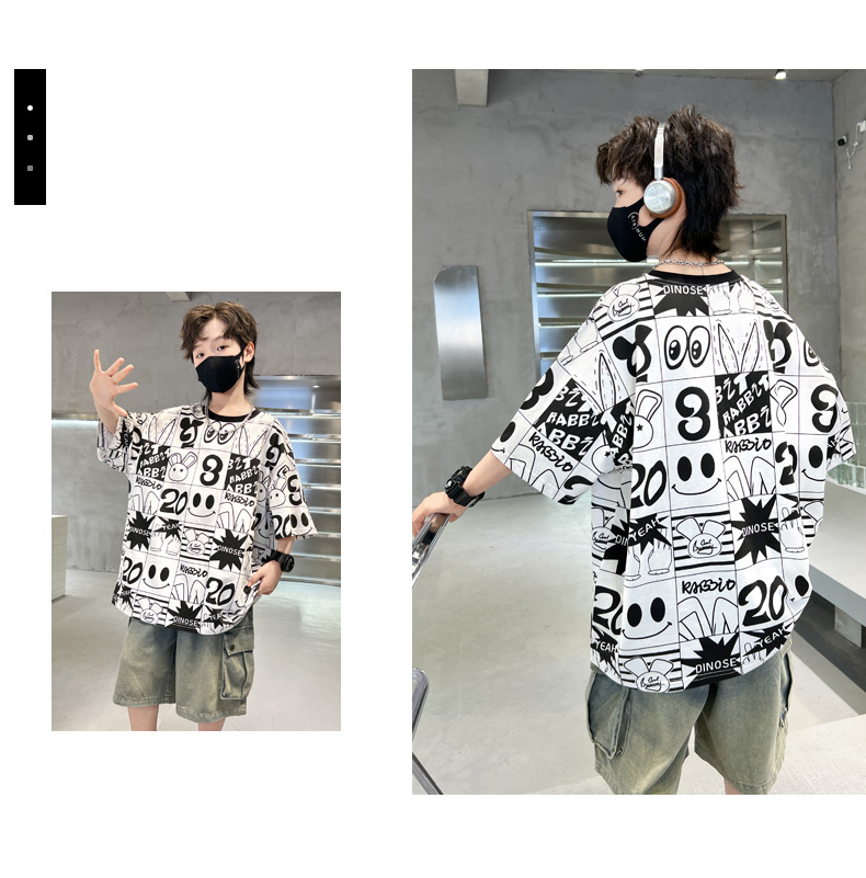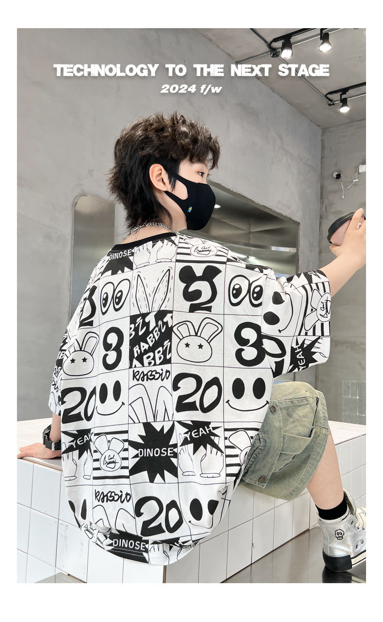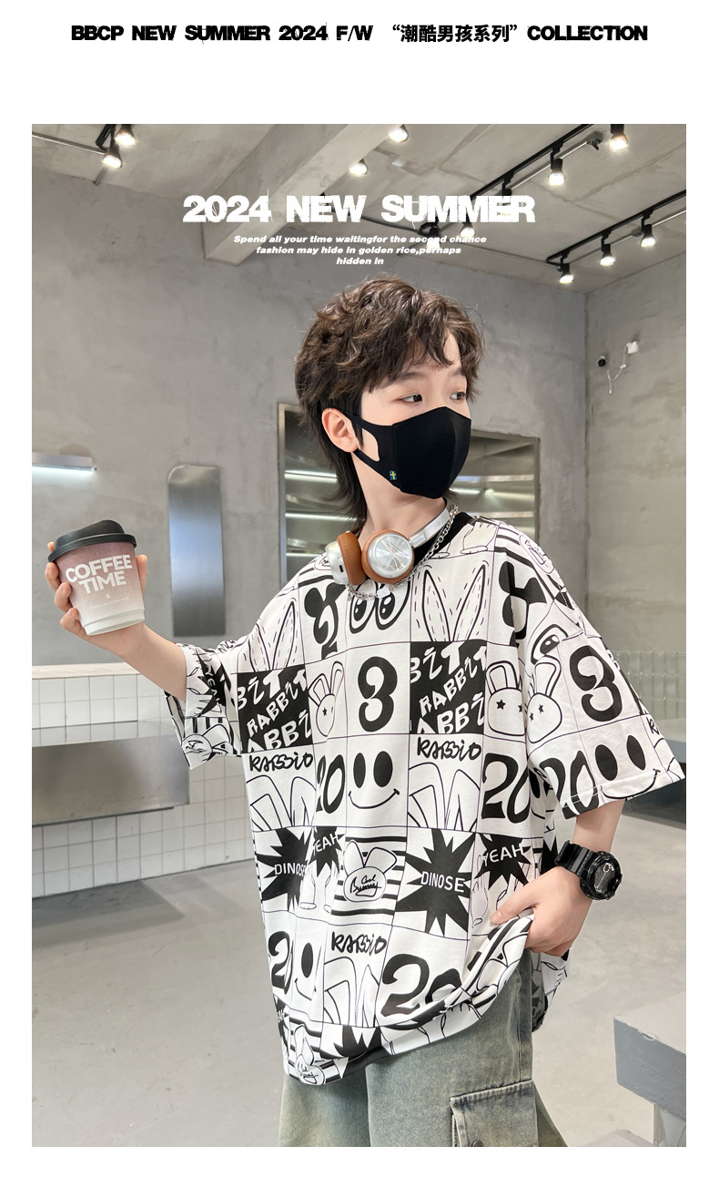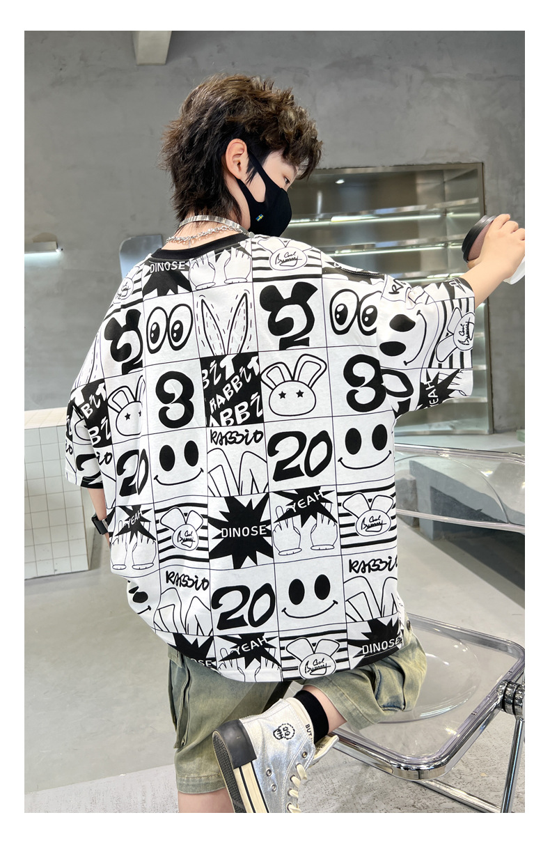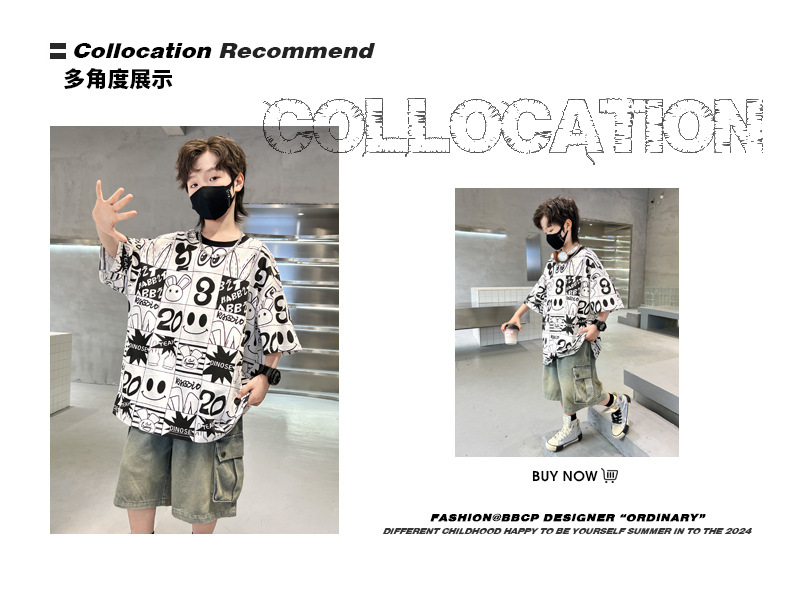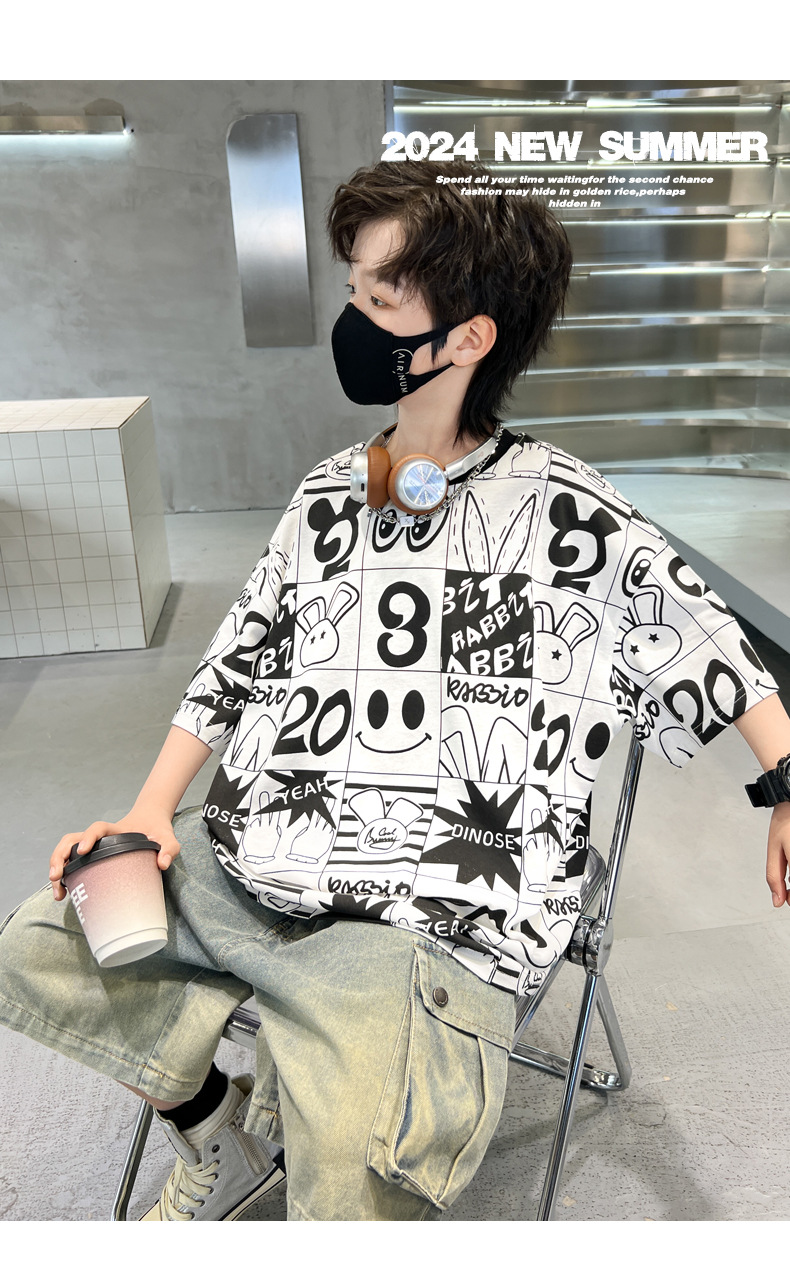 男孩卡通T恤夏款2024新款洋气男孩上衣中大童夏装高街风宽松短袖t