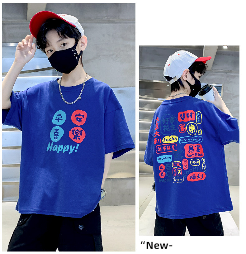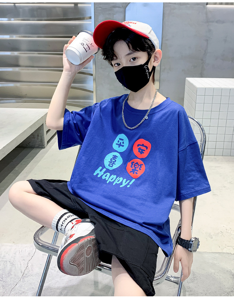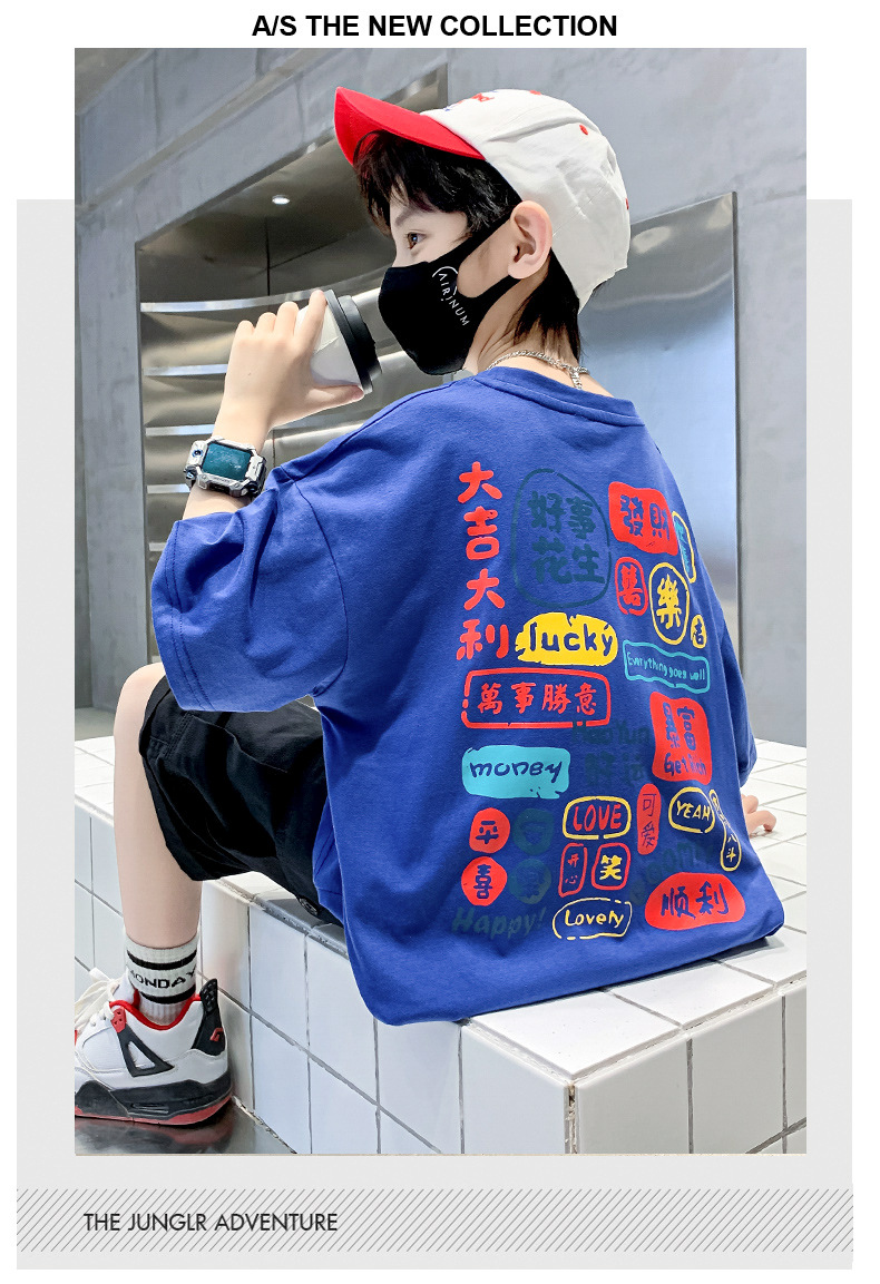 男童洋气时髦短袖T恤夏季新款2024新款大童夏款休闲上衣男孩薄款t