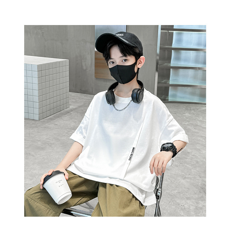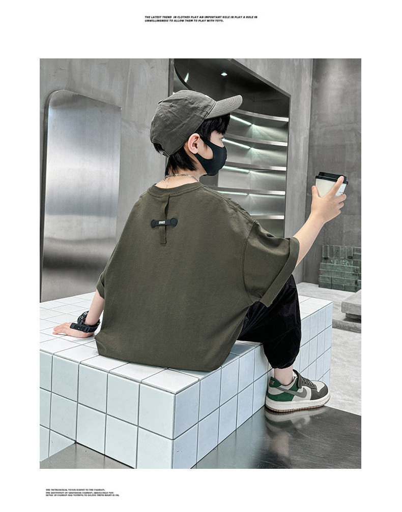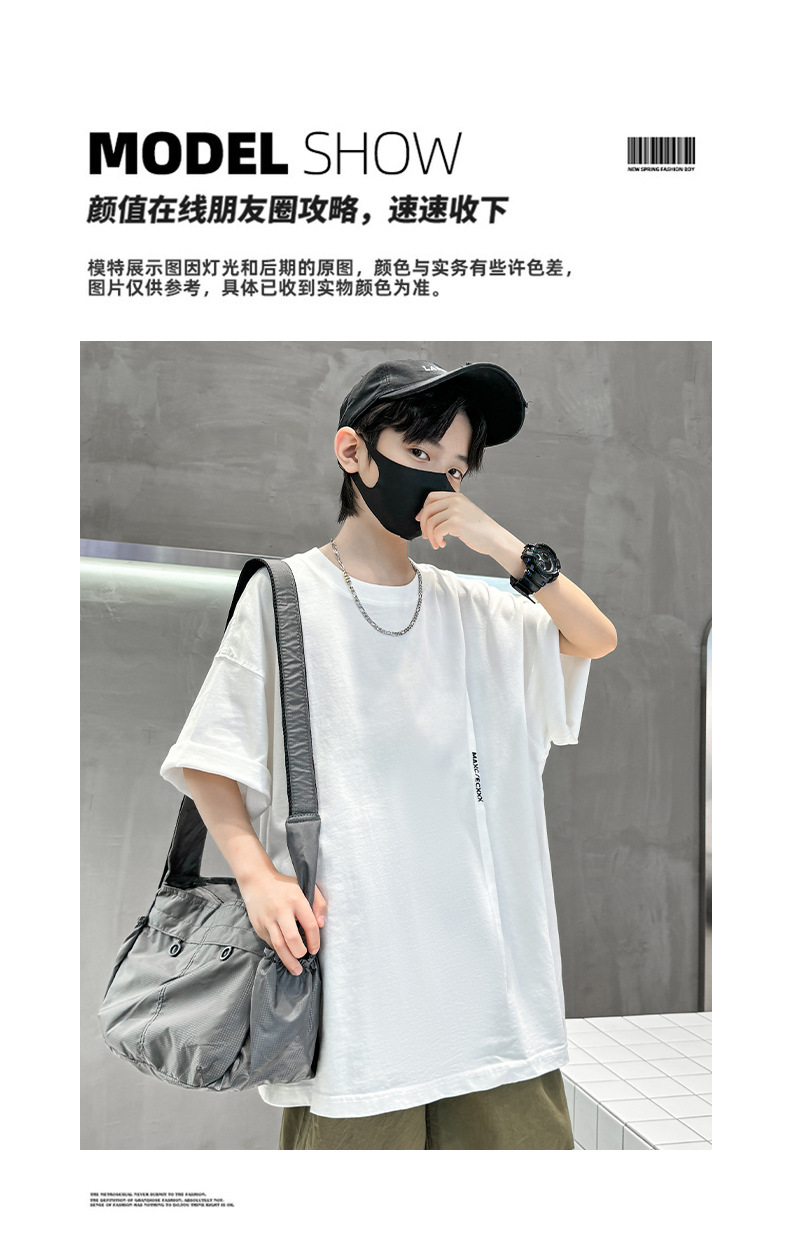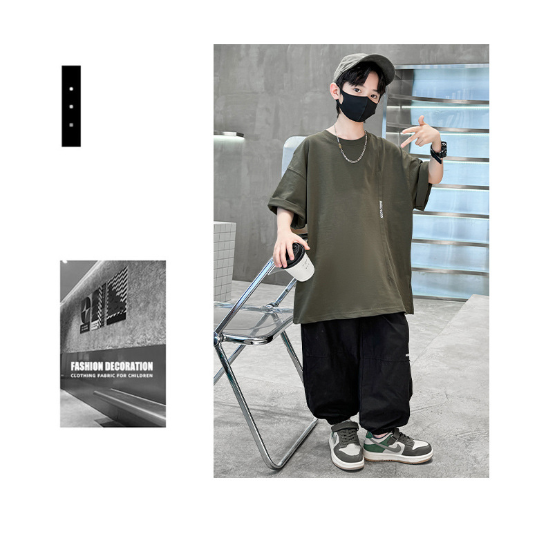 男童夏季纯色短袖套装2024新款大童男孩休闲宽松T恤长裤子两件套8