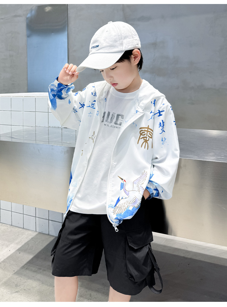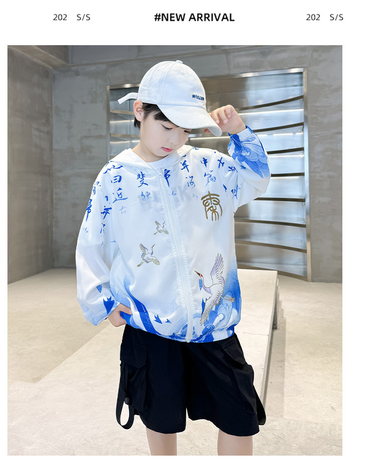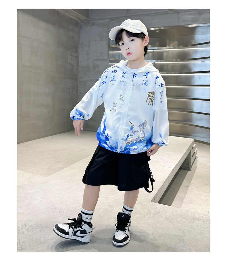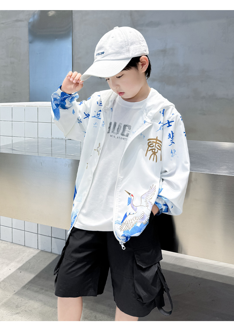 男童防晒衣夏季国潮轻薄夏装2024新款儿童洋气潮牌连帽防晒服夏款