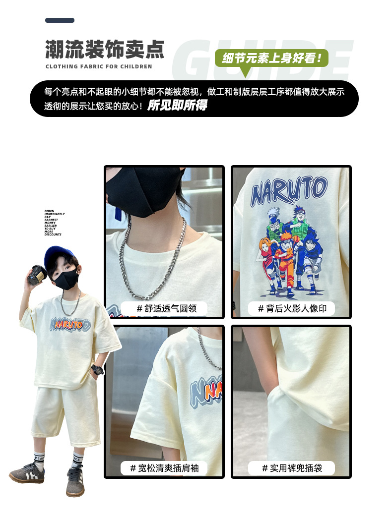 男童短袖T恤套装夏装2024新款男孩夏季半袖体恤t中大童帅气儿童潮