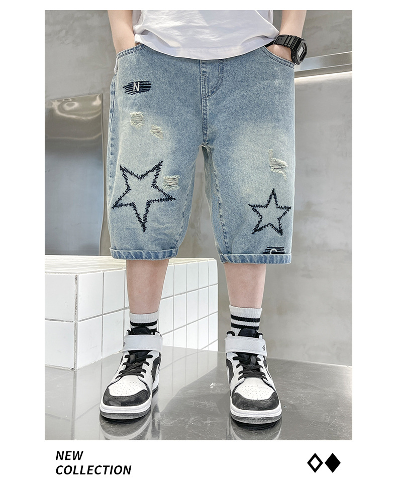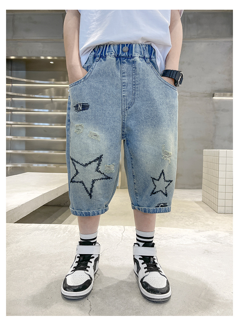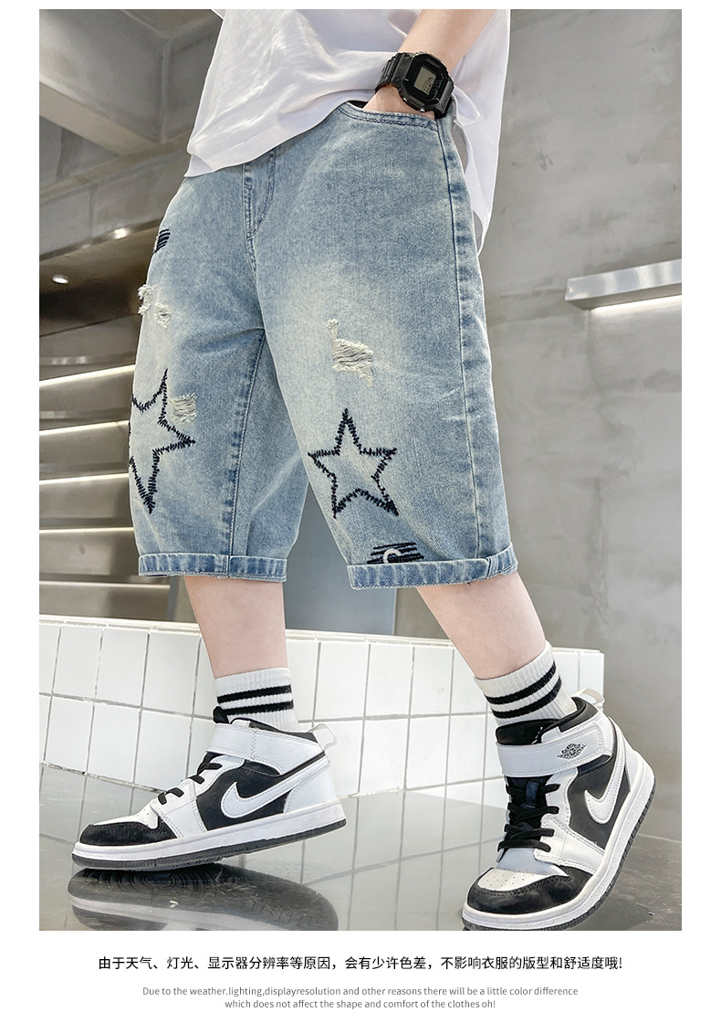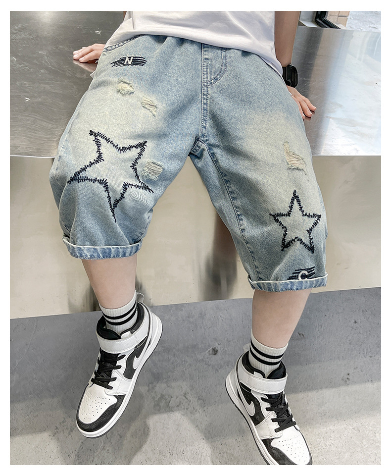 男童夏季牛仔短裤2024新款儿童酷帅破洞休闲裤子中大童夏装五分裤