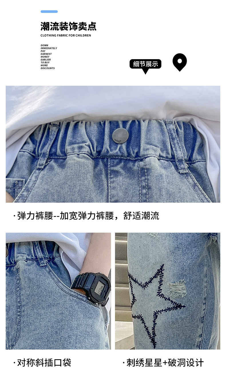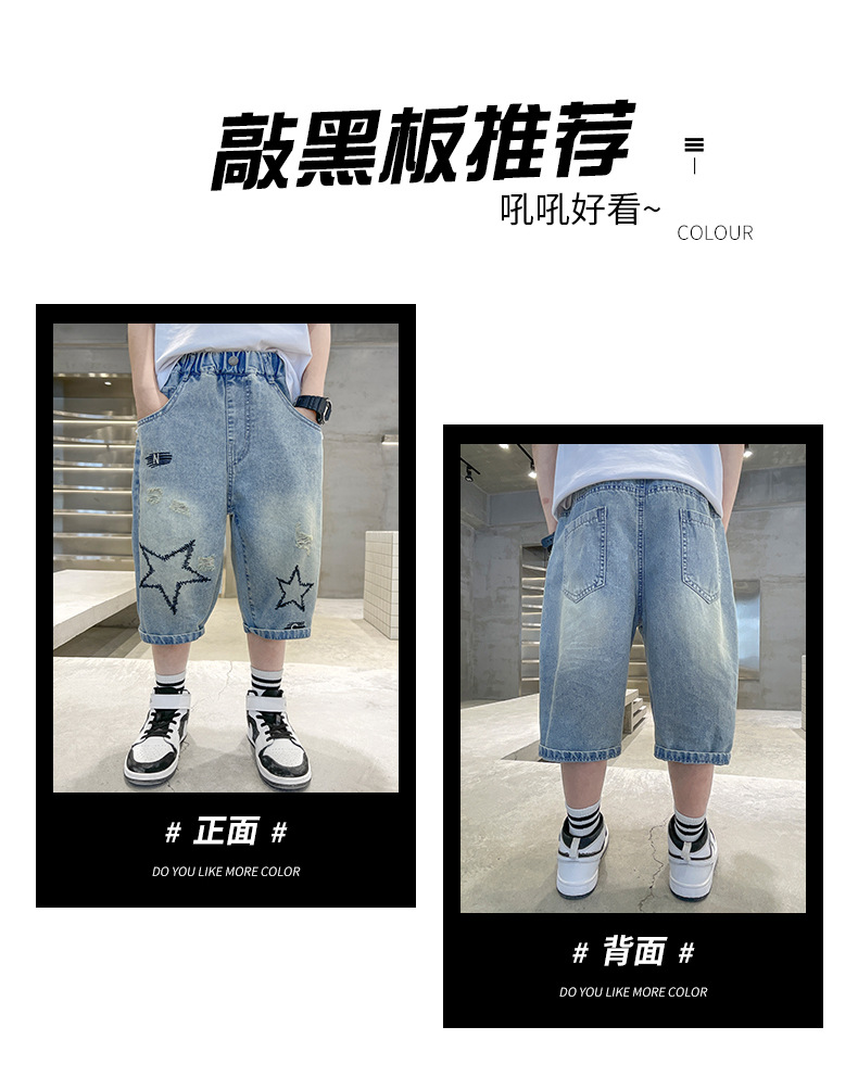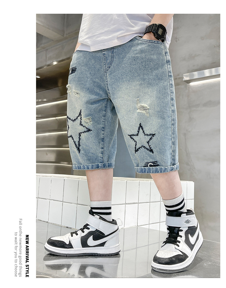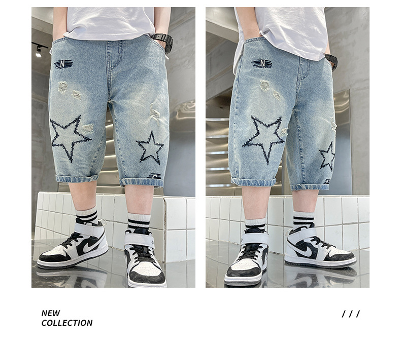 男童夏季牛仔短裤2024新款儿童酷帅破洞休闲裤子中大童夏装五分裤