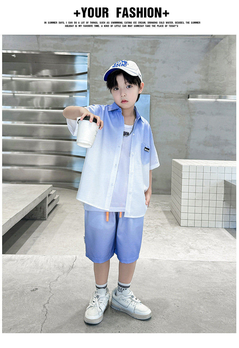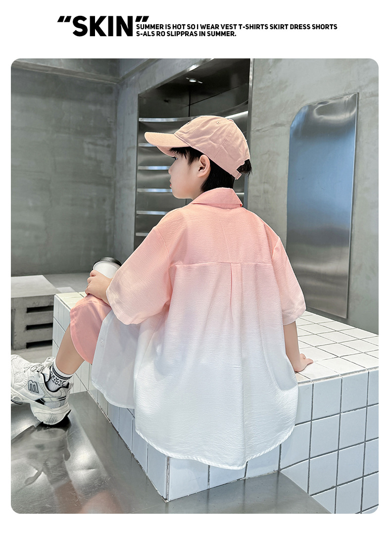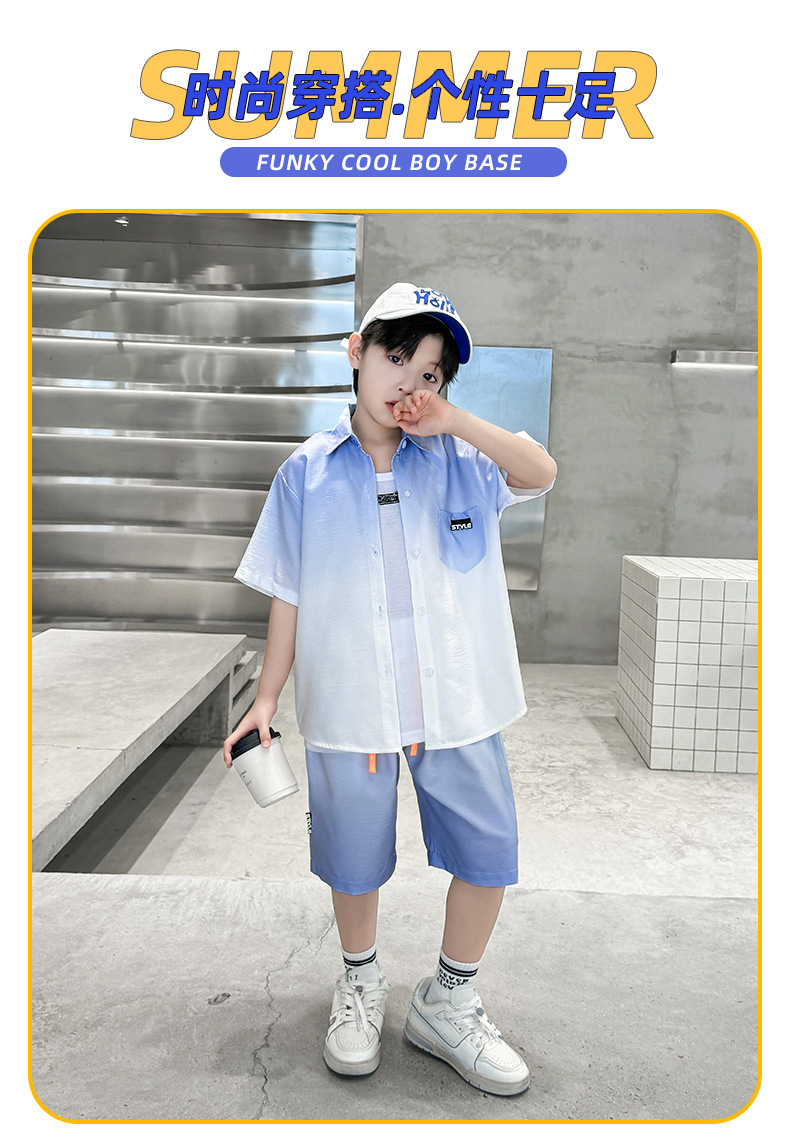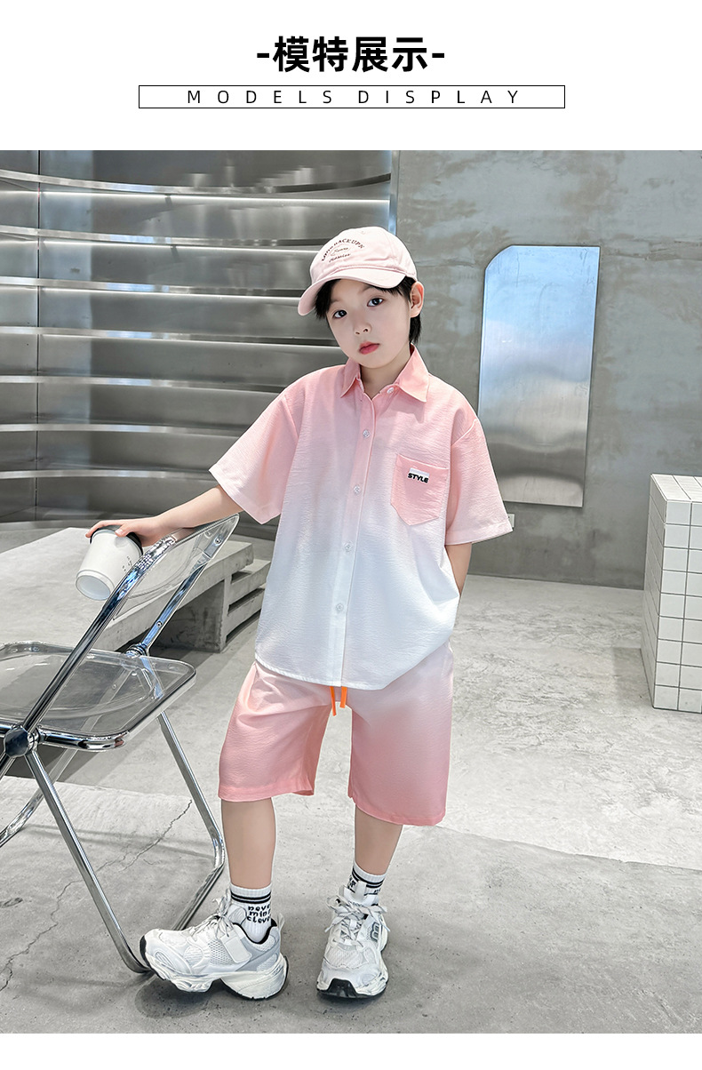 渐变短袖衬衫套装男童夏季潮牌宽松休闲短袖短裤两件套潮2024新款