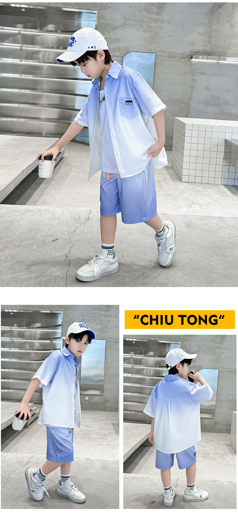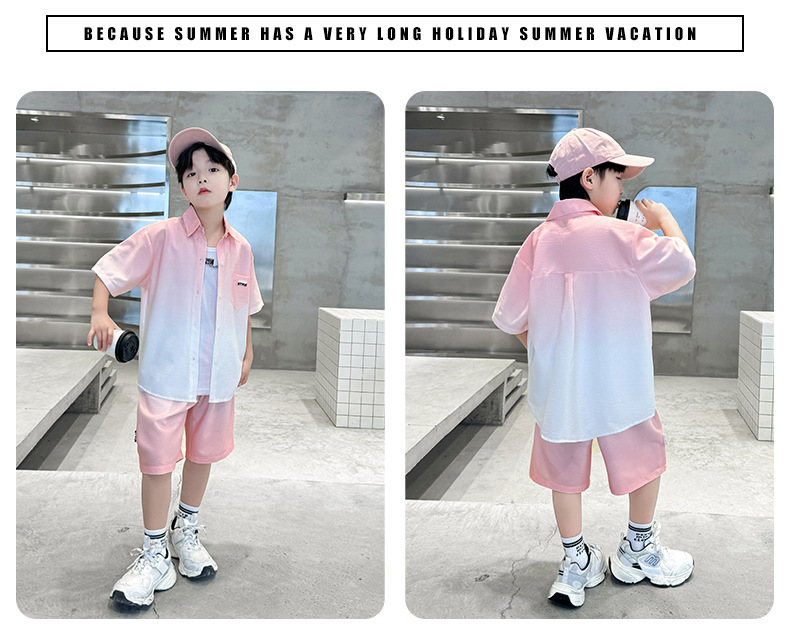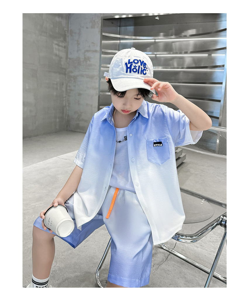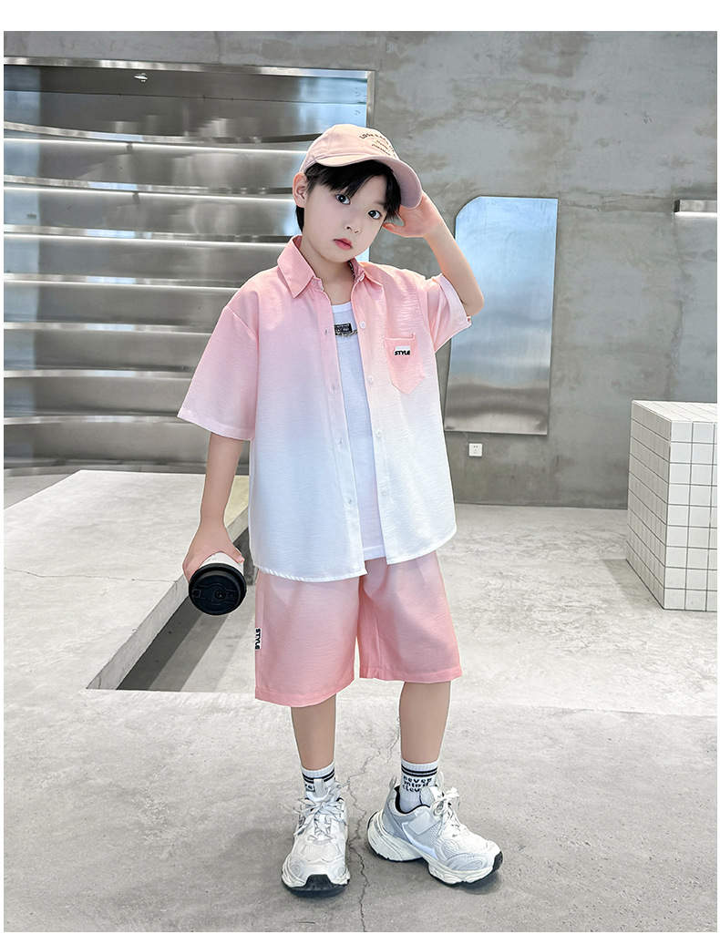 渐变短袖衬衫套装男童夏季潮牌宽松休闲短袖短裤两件套潮2024新款