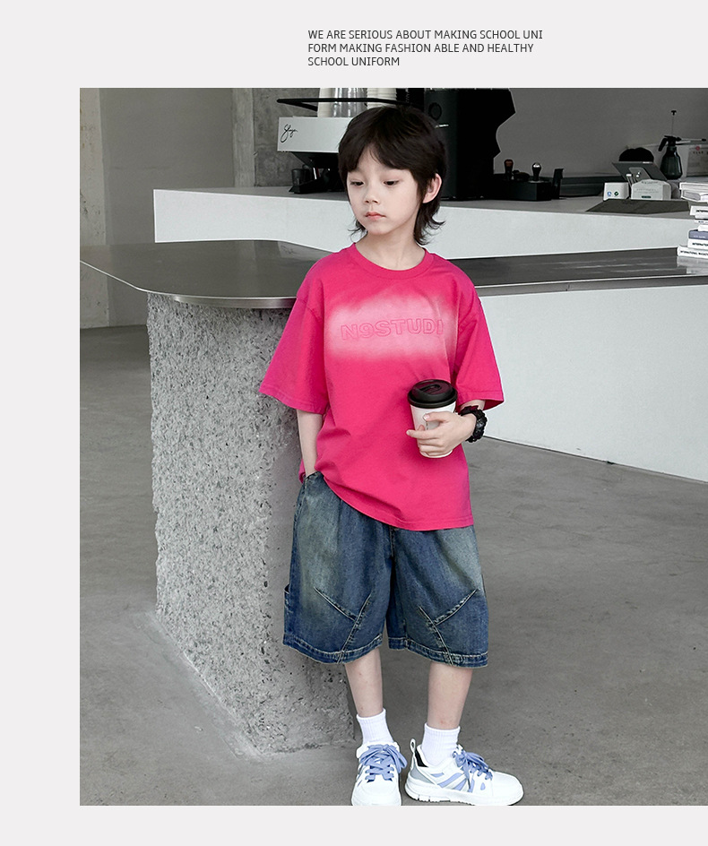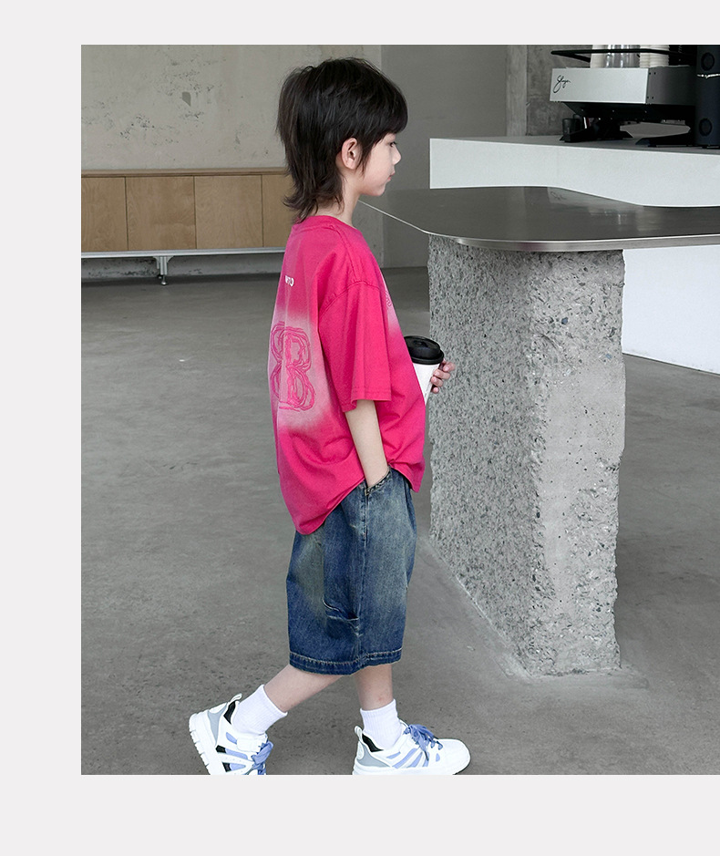 男童渐变设计潮t短袖夏季2024新款中大童薄款潮酷T恤上衣夏装批发