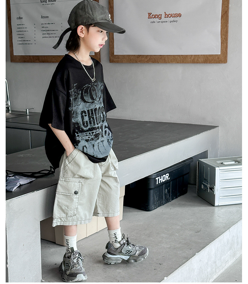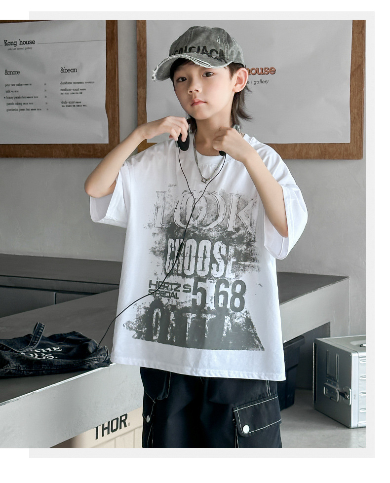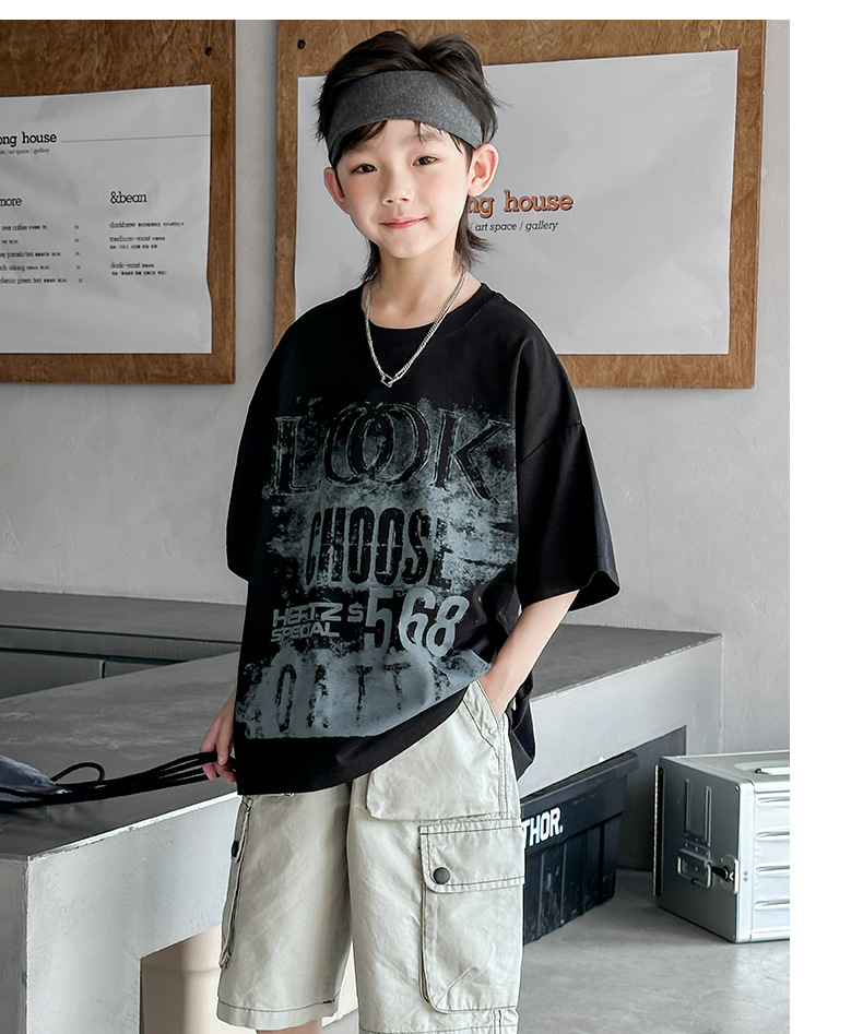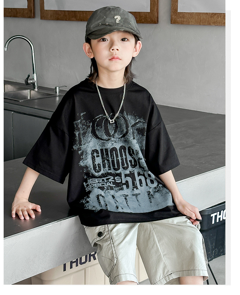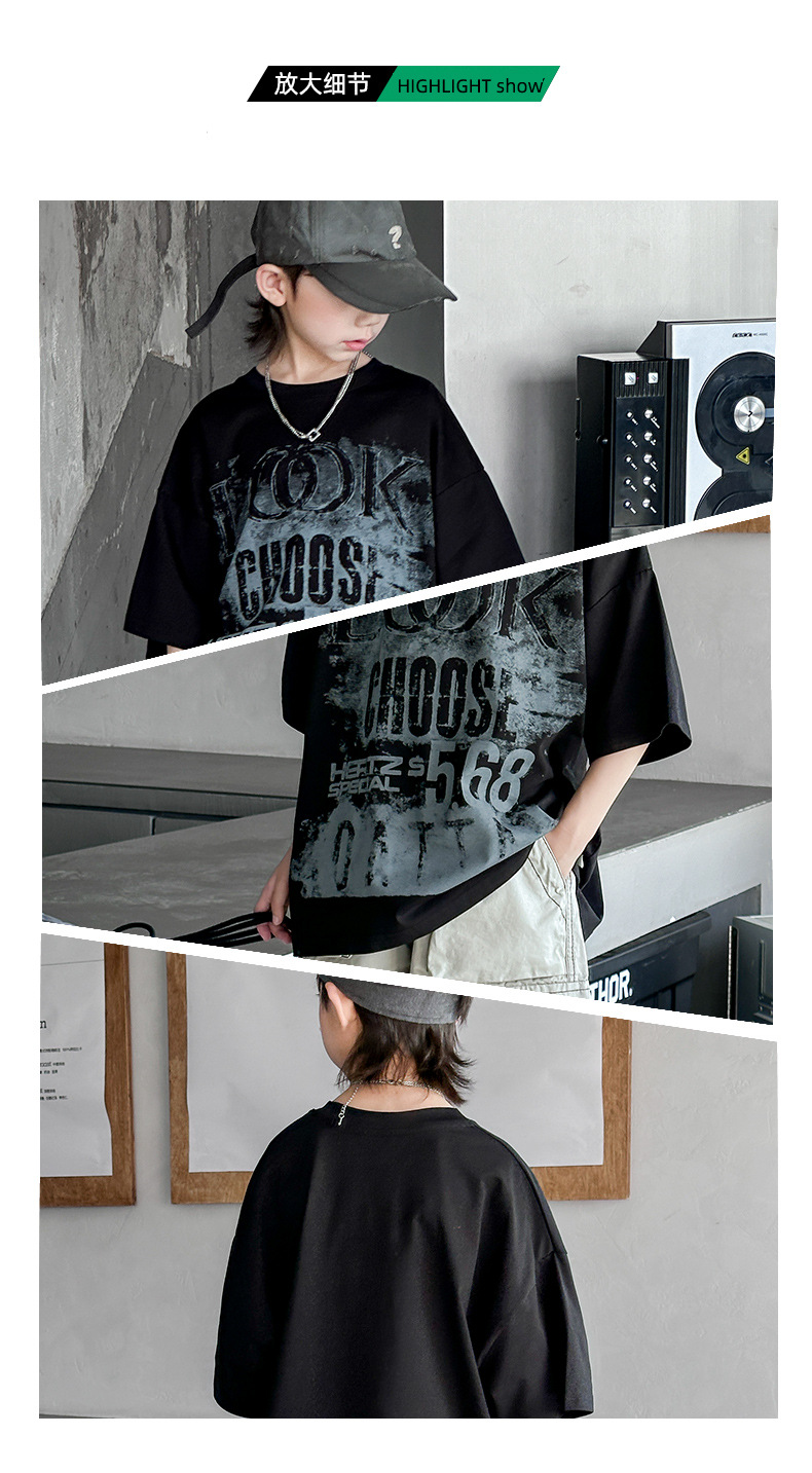 男童短袖T恤夏装2024新款儿童夏季潮牌炸街上衣男孩夏款帅气体恤t