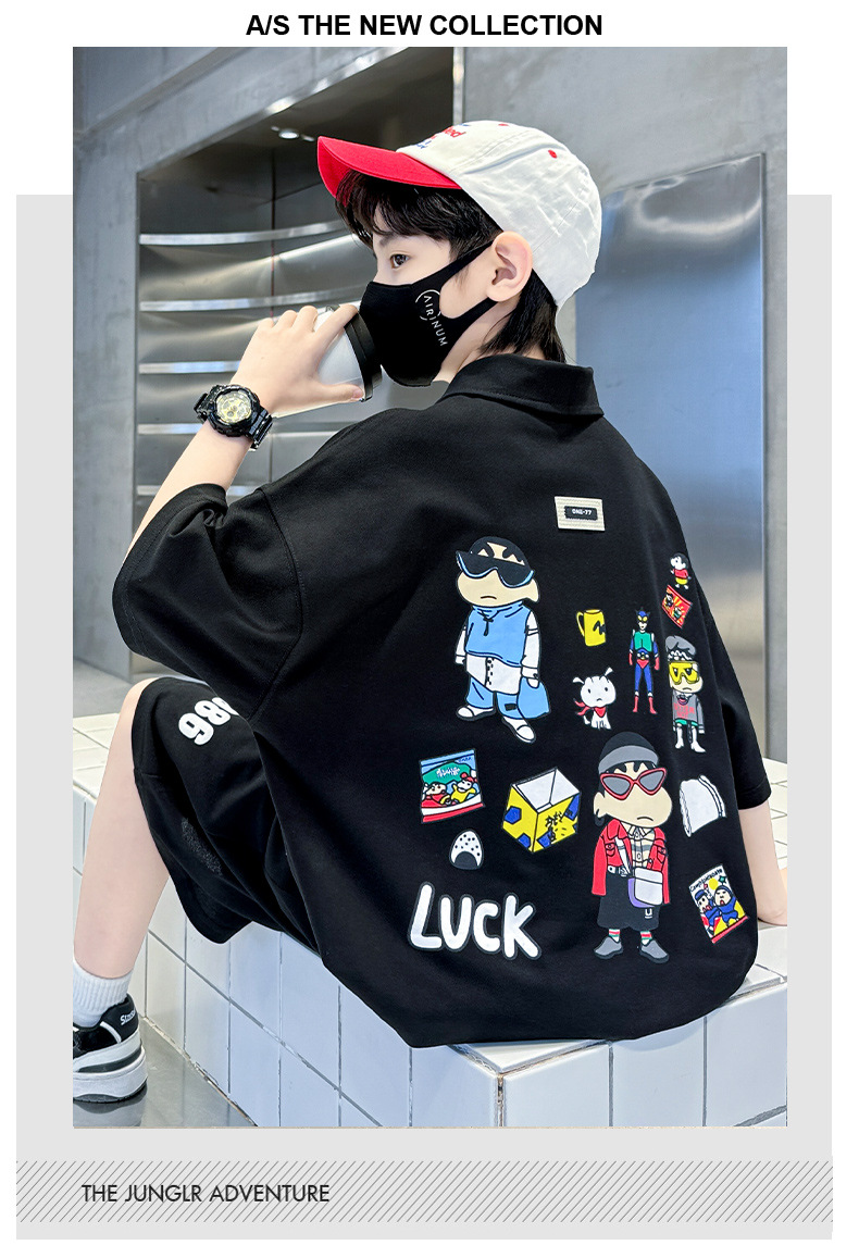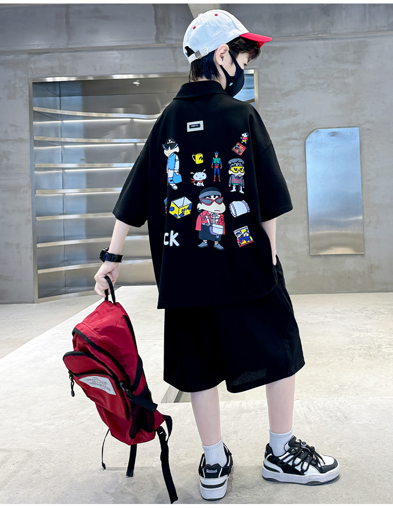 男童夏季套装2024新款儿童男孩夏装卡通印花POLO衫夏款短袖运动服