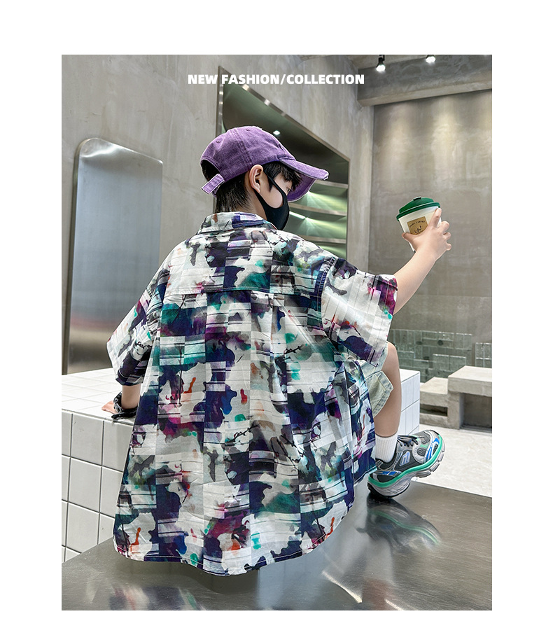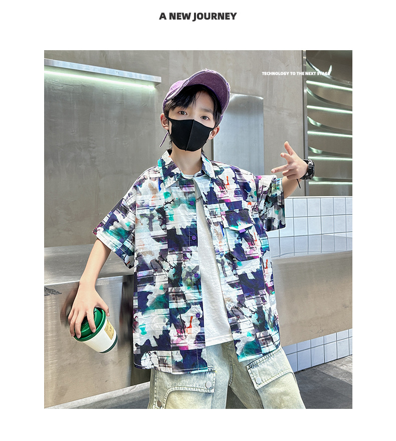 男童衬衫夏装2024新款中大童休闲度假海滩风短袖儿童夏季衣服批发
