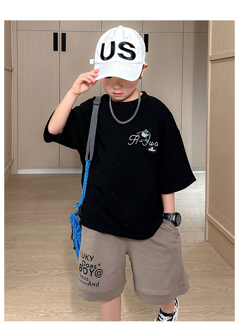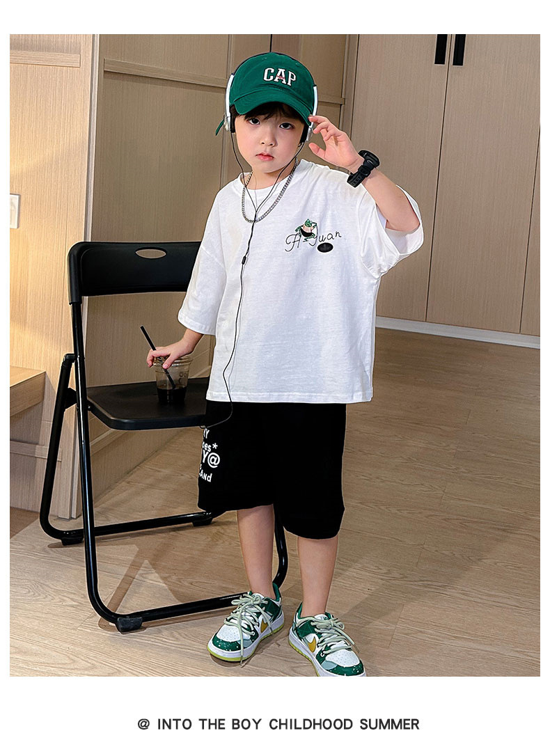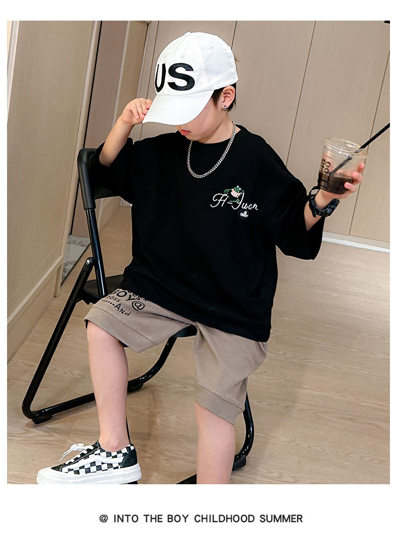 儿童套装夏季新款2024中大童男孩休闲T恤夏装男童短袖短裤两件套8
