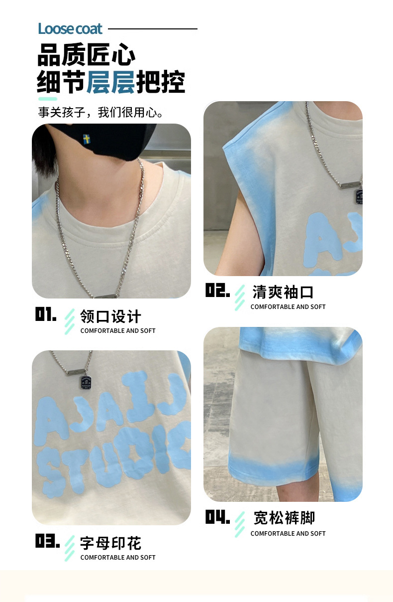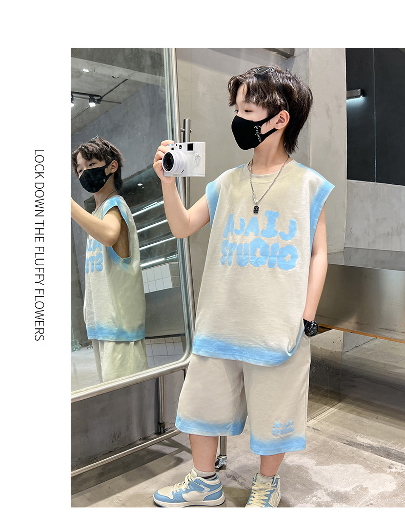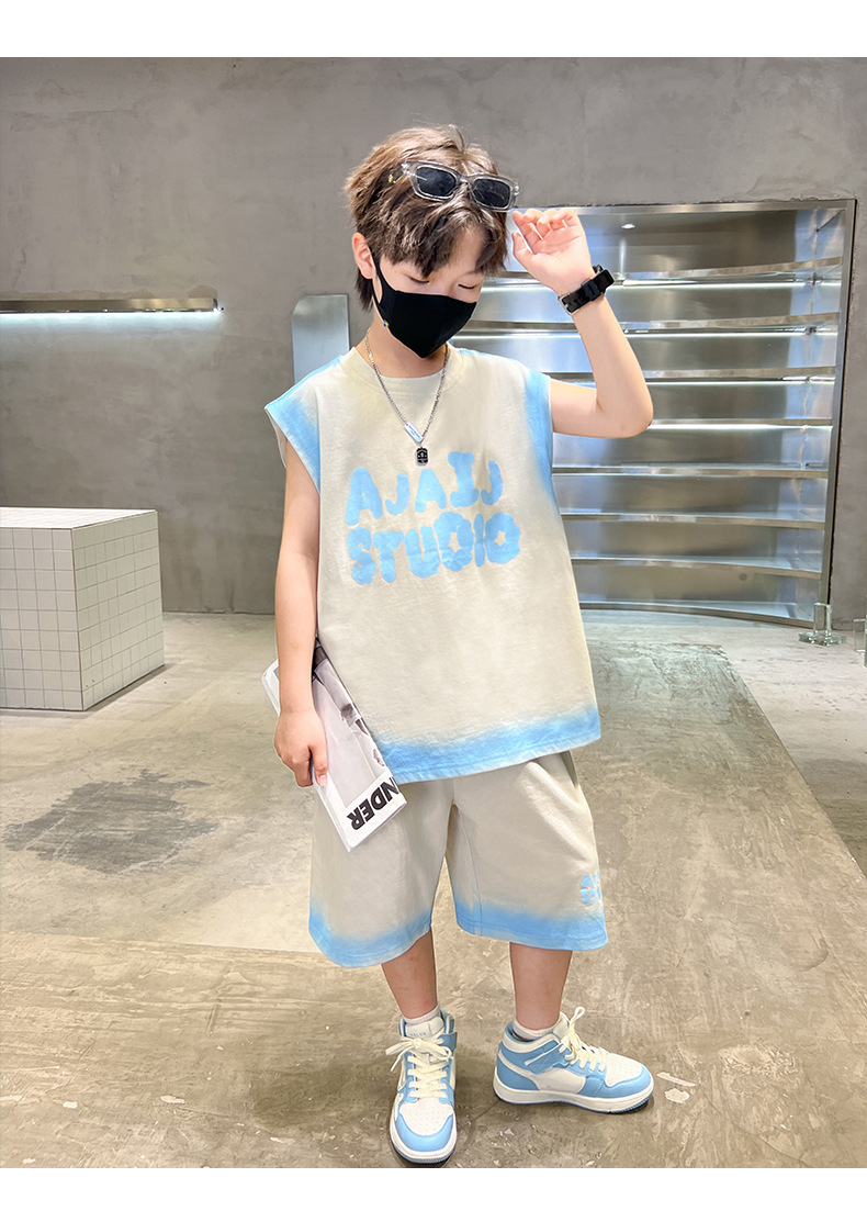 男童酷帅夏装套装2024新款中大童儿童洋气男孩夏季无袖背心运动服