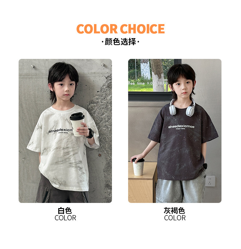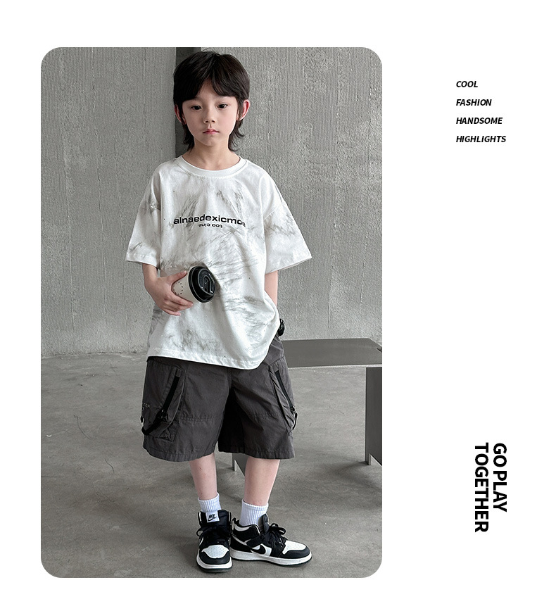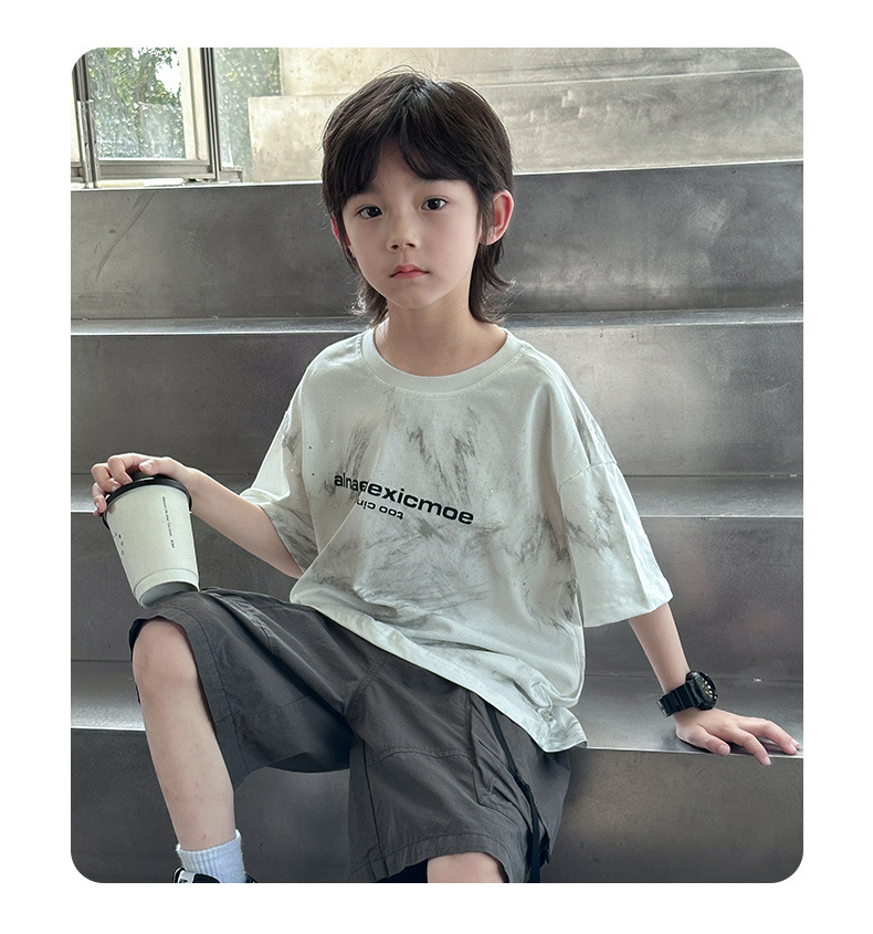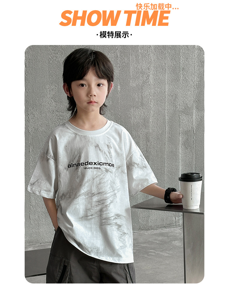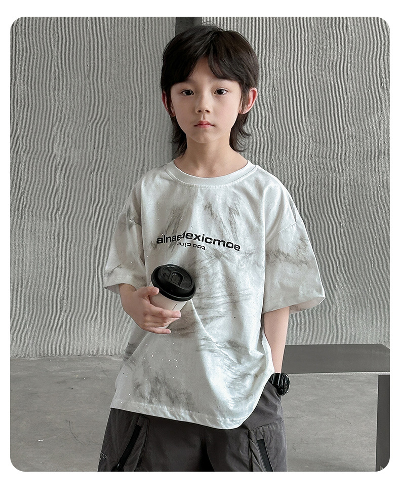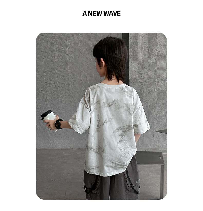 男童痞帅炸街潮t恤夏款2024新款中大童夏季男孩休闲扎染短袖上衣t