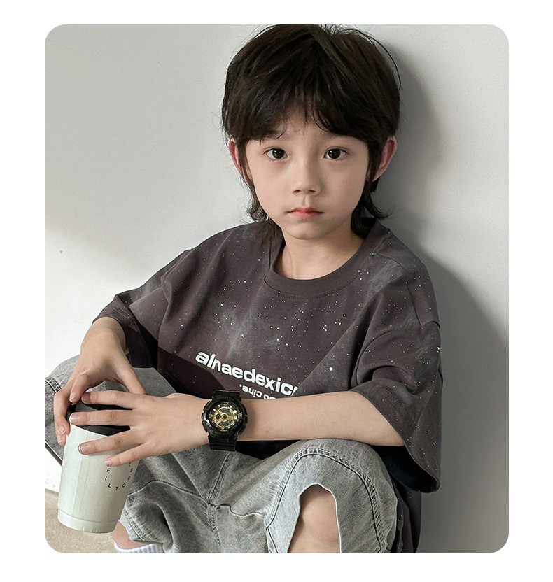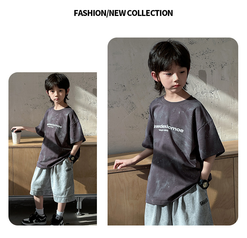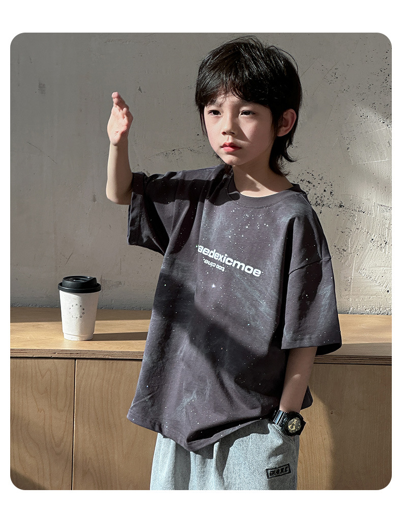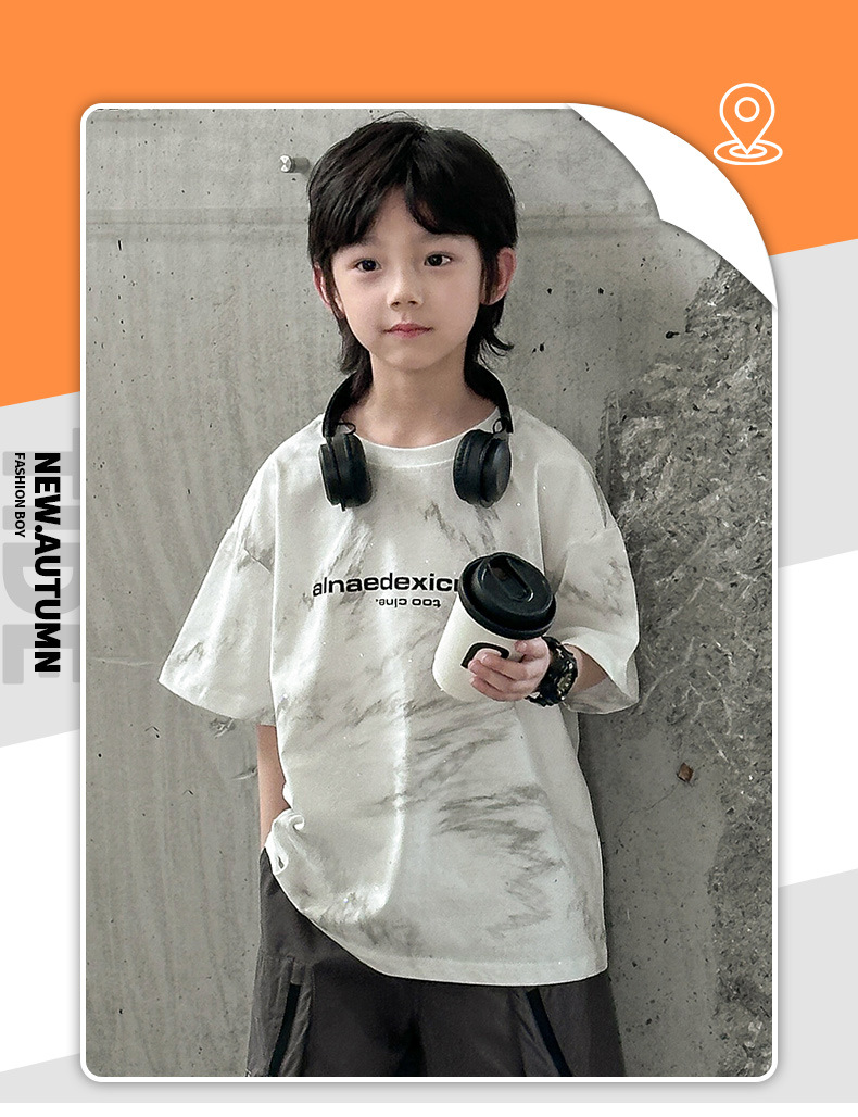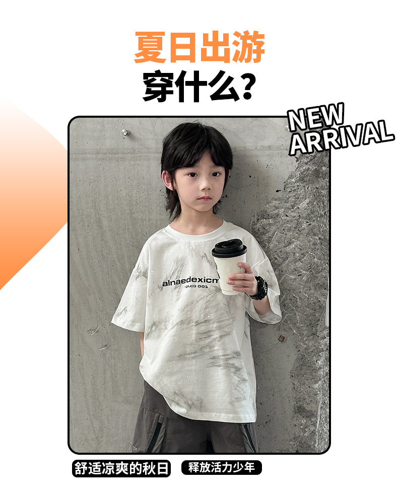 男童痞帅炸街潮t恤夏款2024新款中大童夏季男孩休闲扎染短袖上衣t