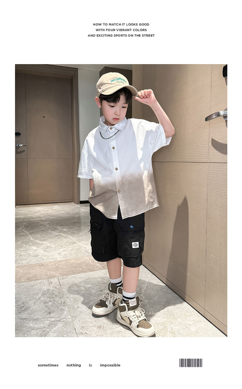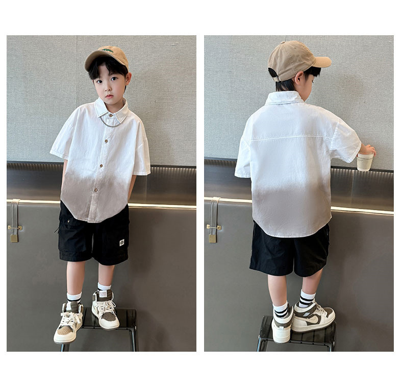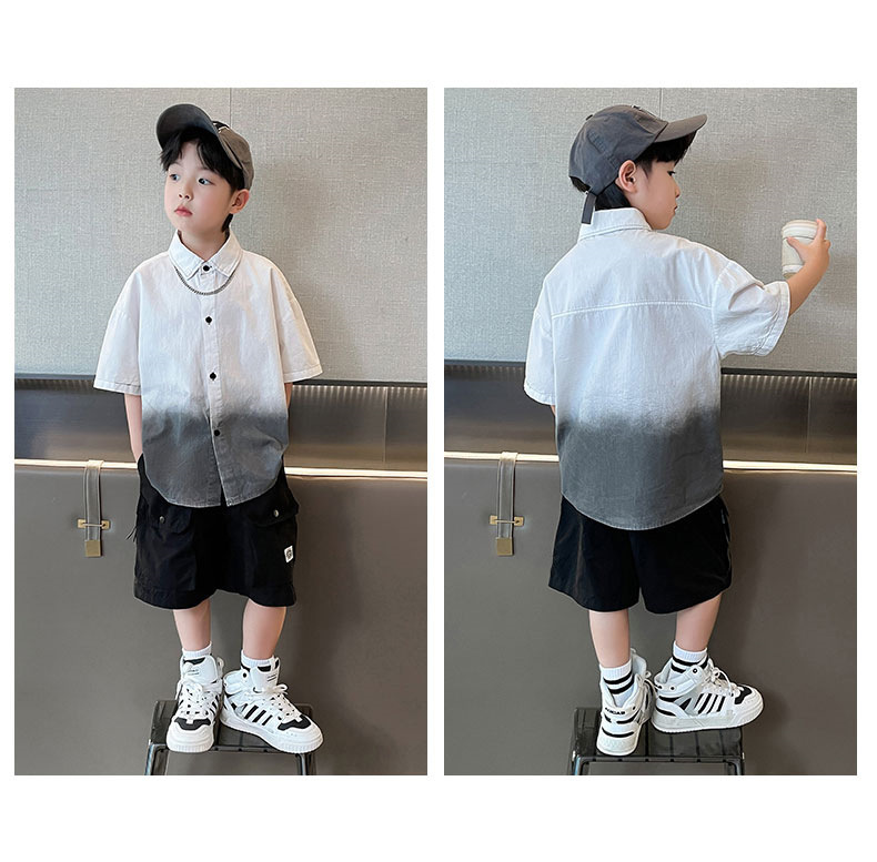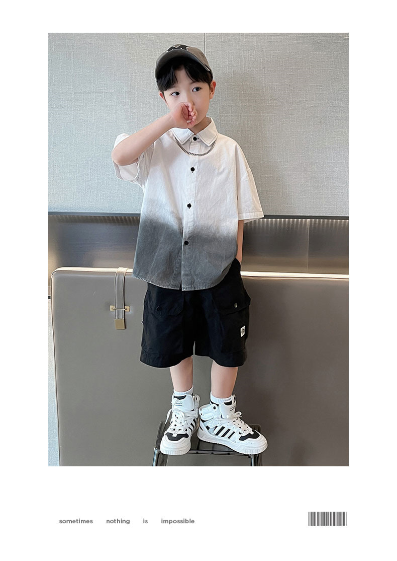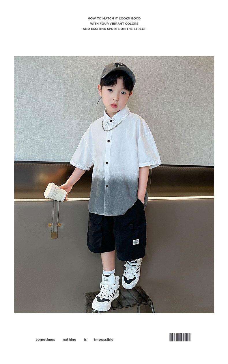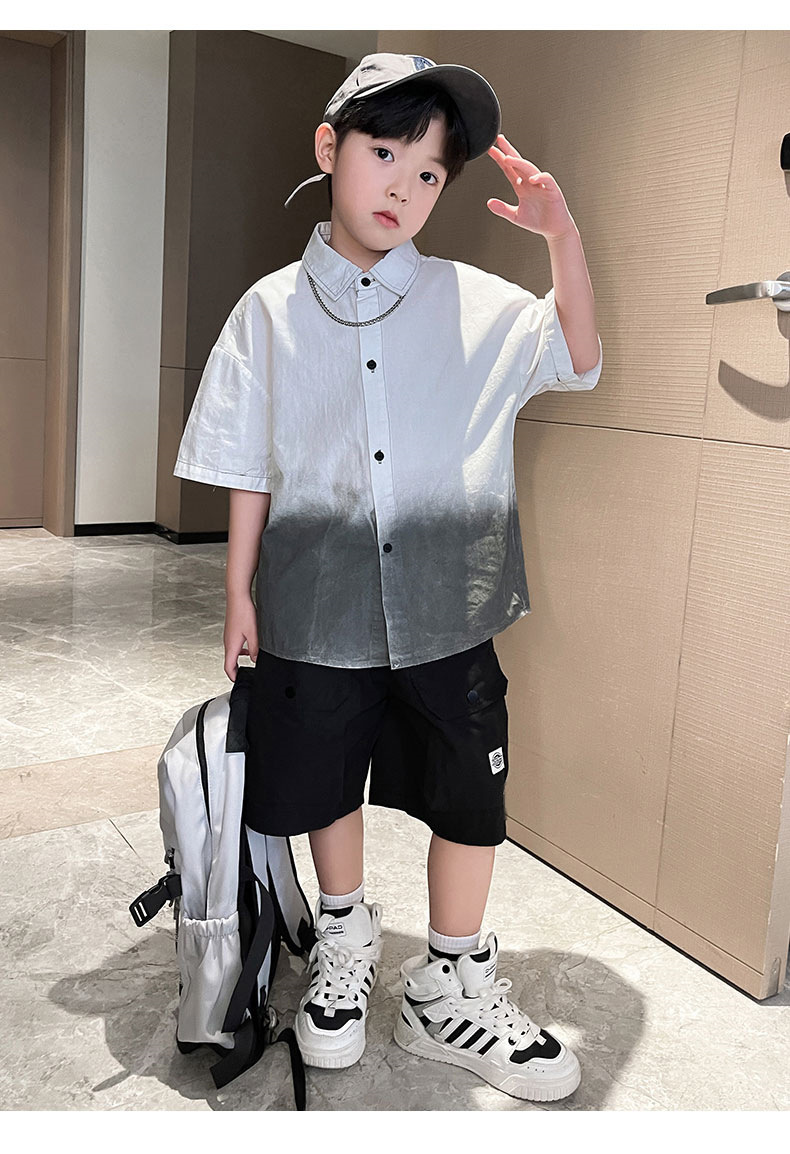 儿童夏季短袖衬衫套装2024新款中大童夏款个性渐变T恤短裤两件套t