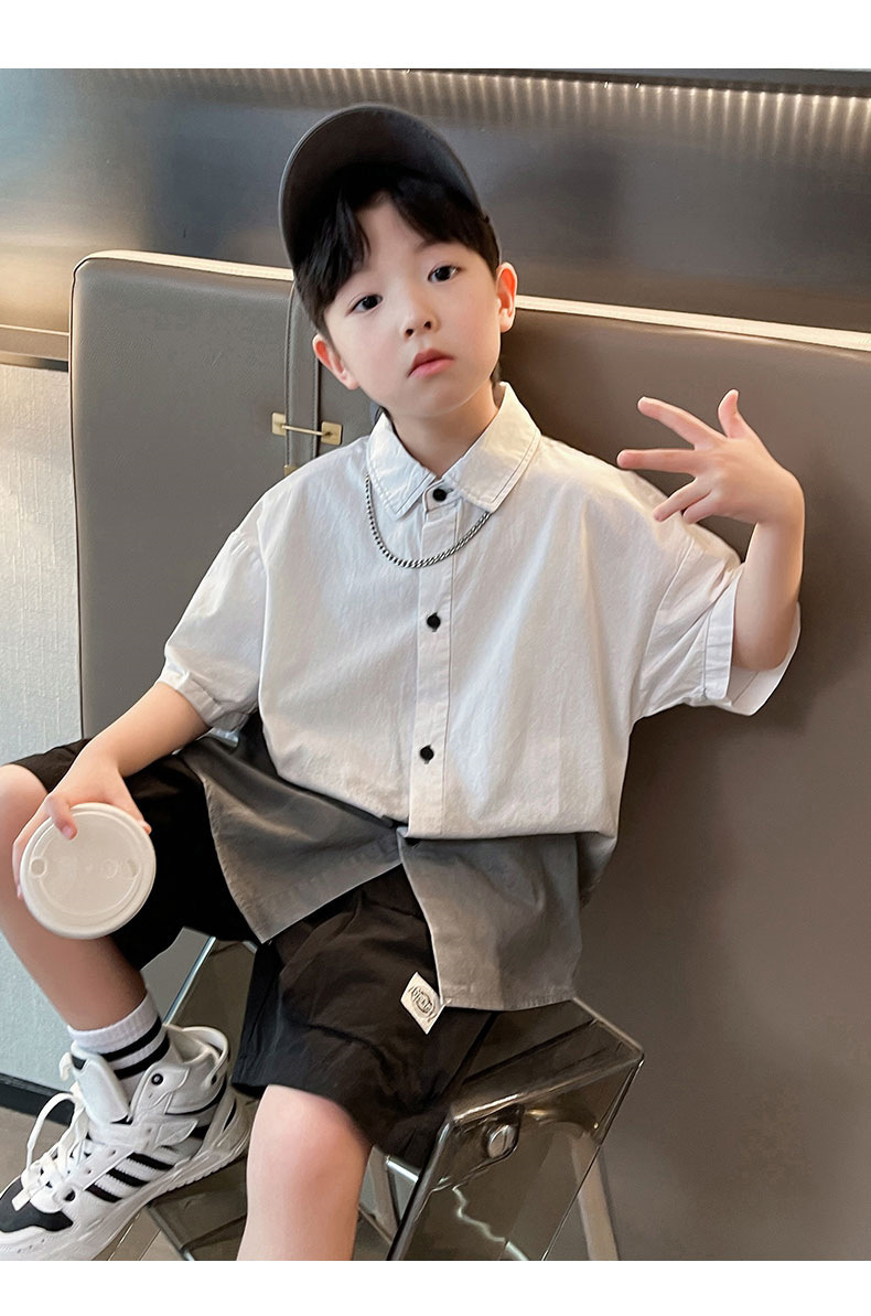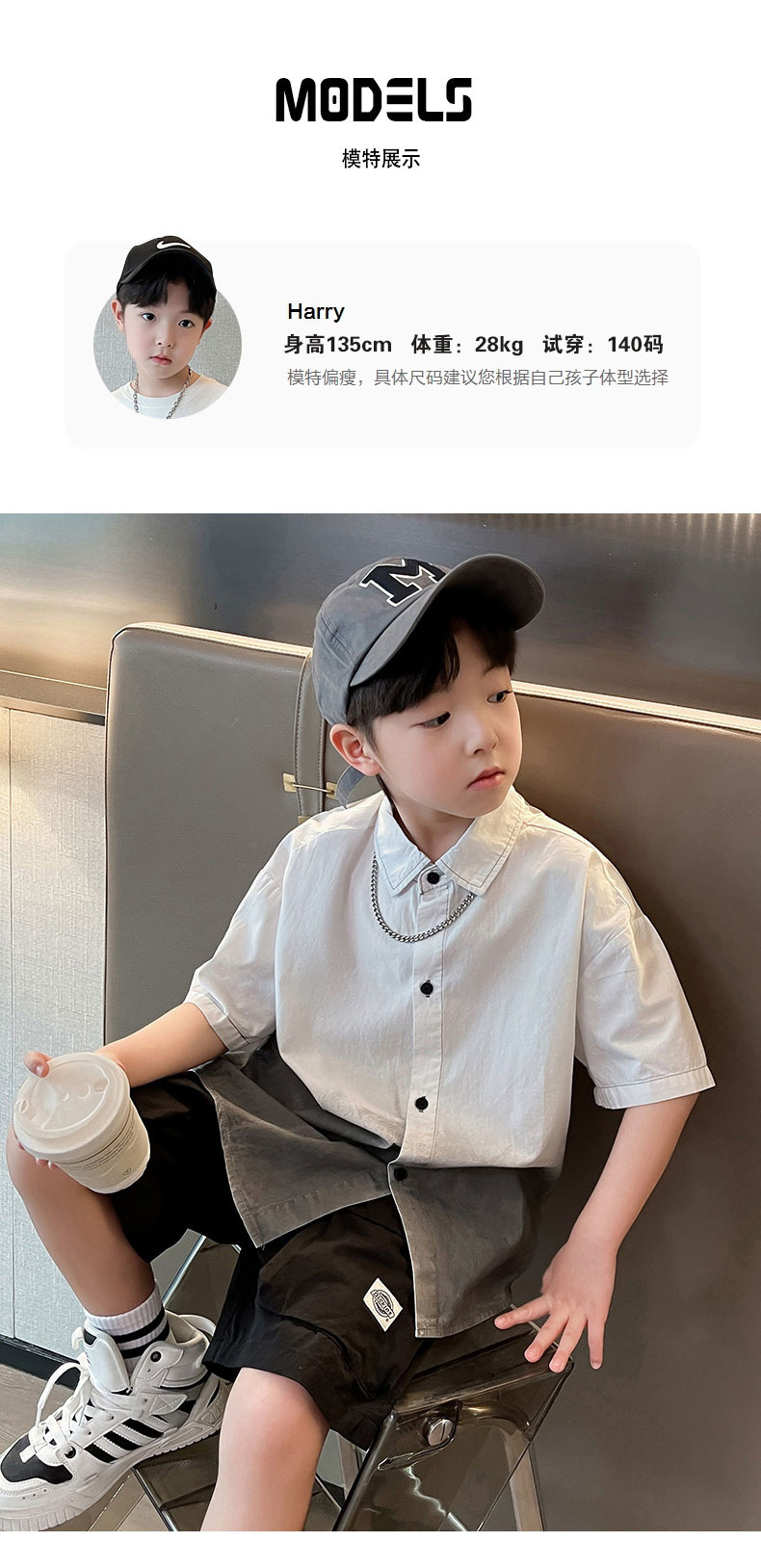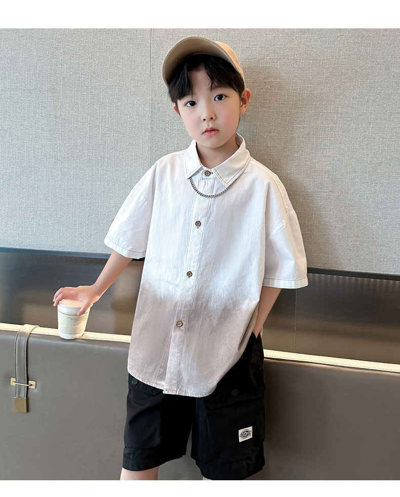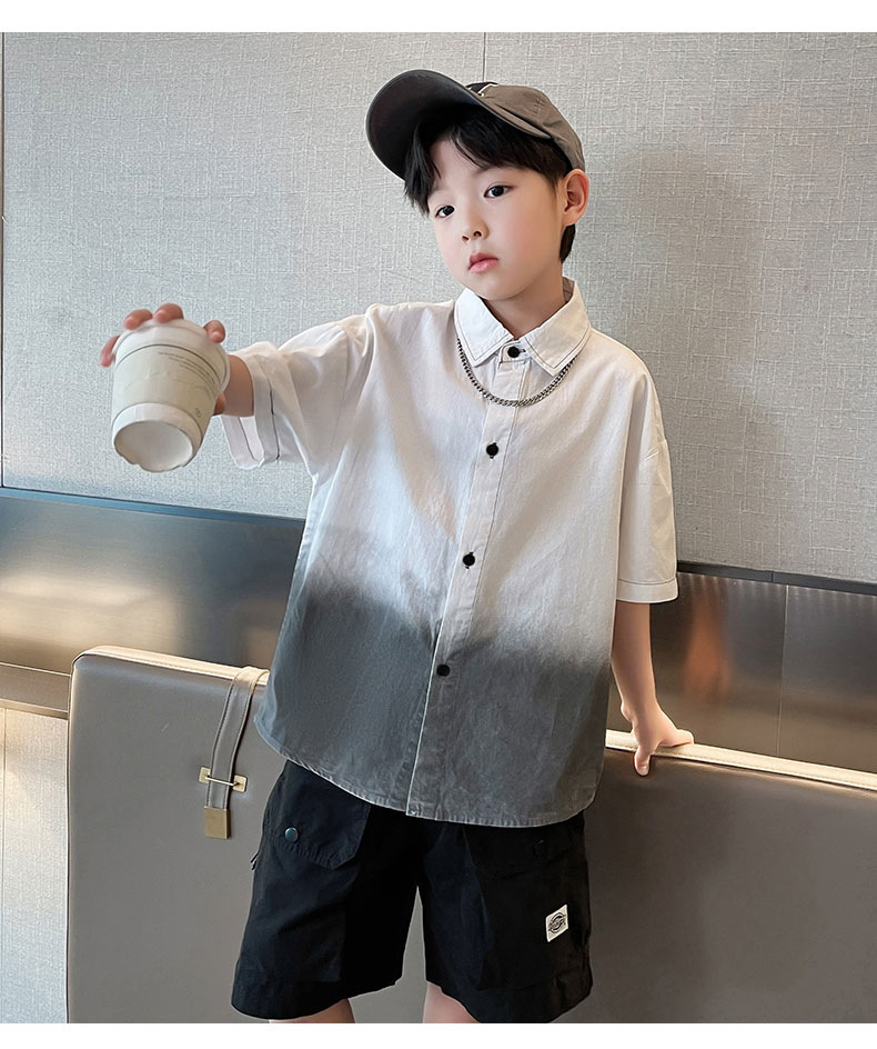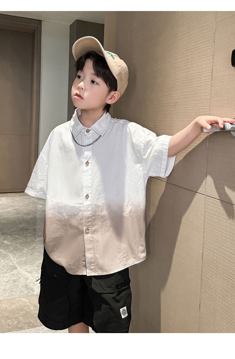 儿童夏季短袖衬衫套装2024新款中大童夏款个性渐变T恤短裤两件套t
