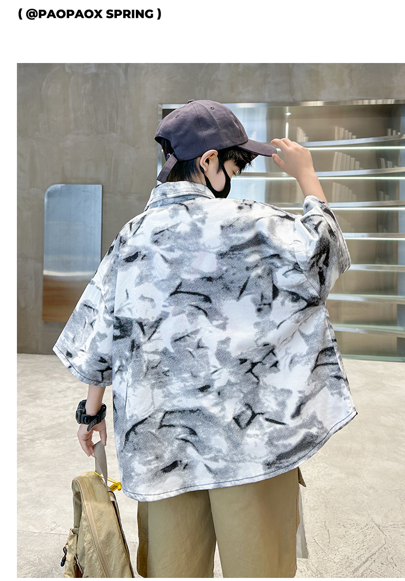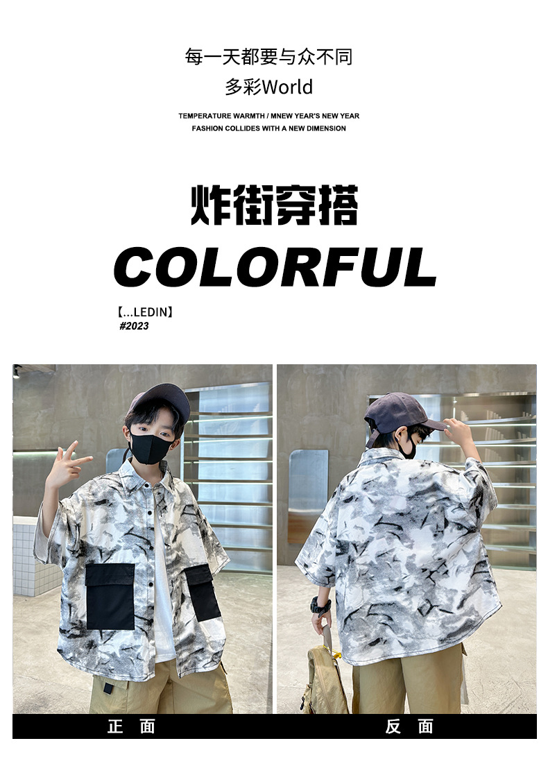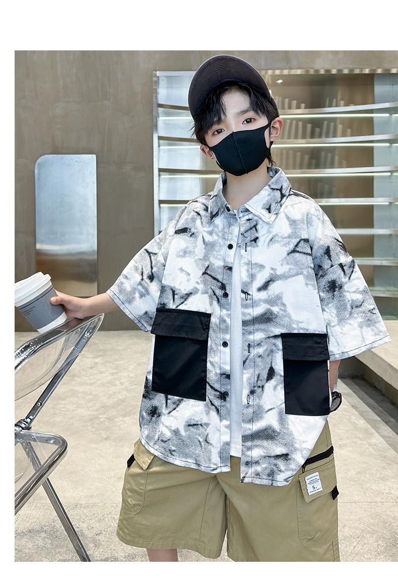 儿童短袖衬衫男童夏季薄款中大童男孩夏装衣服帅气潮酷夏款上衣潮