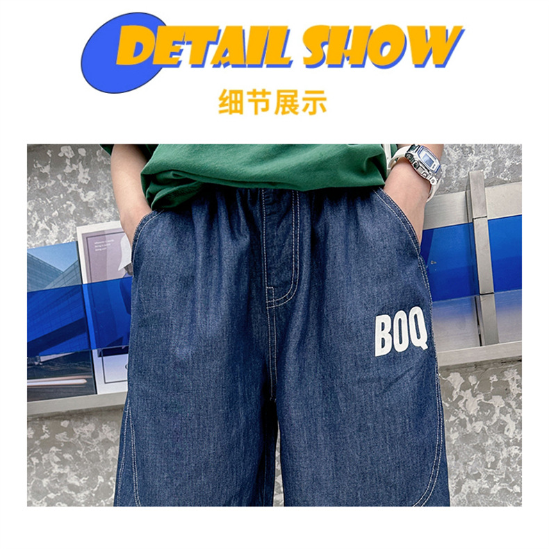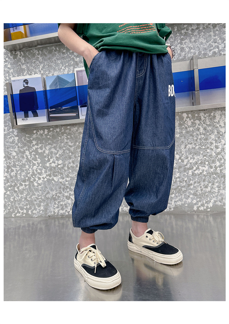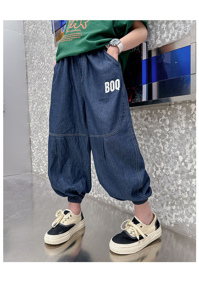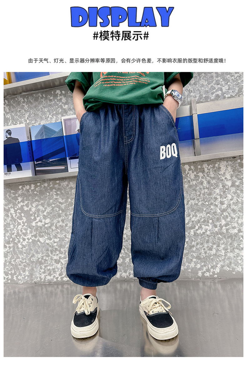 男童深牛仔裤防蚊裤2024新款中大童夏季纯色洋气裤子儿童薄款夏装