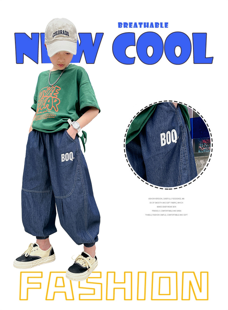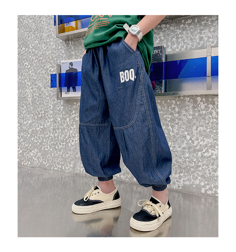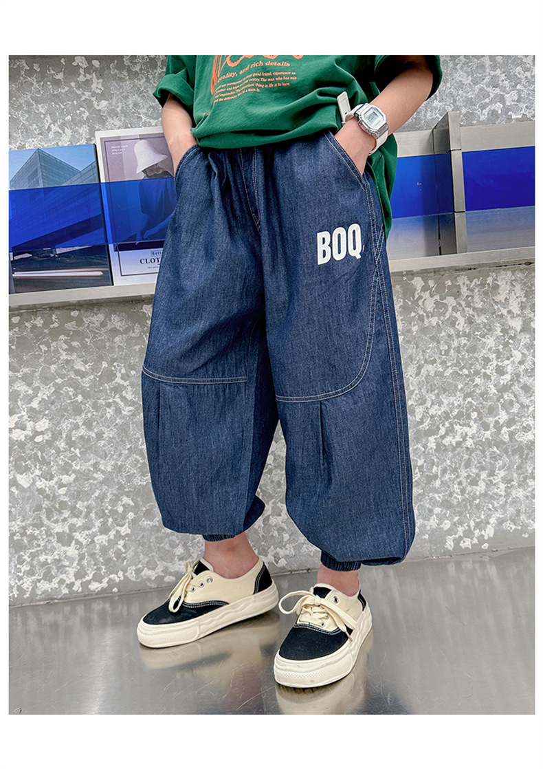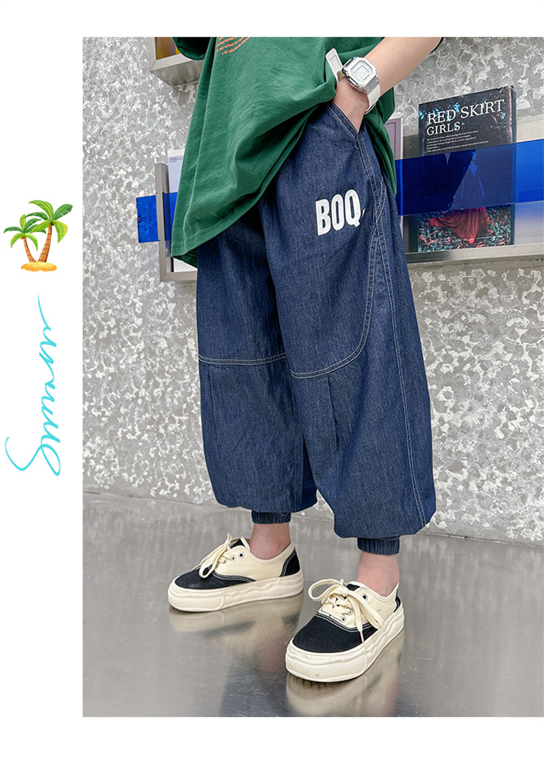 男童深牛仔裤防蚊裤2024新款中大童夏季纯色洋气裤子儿童薄款夏装